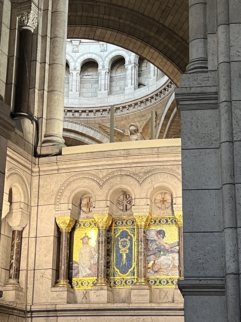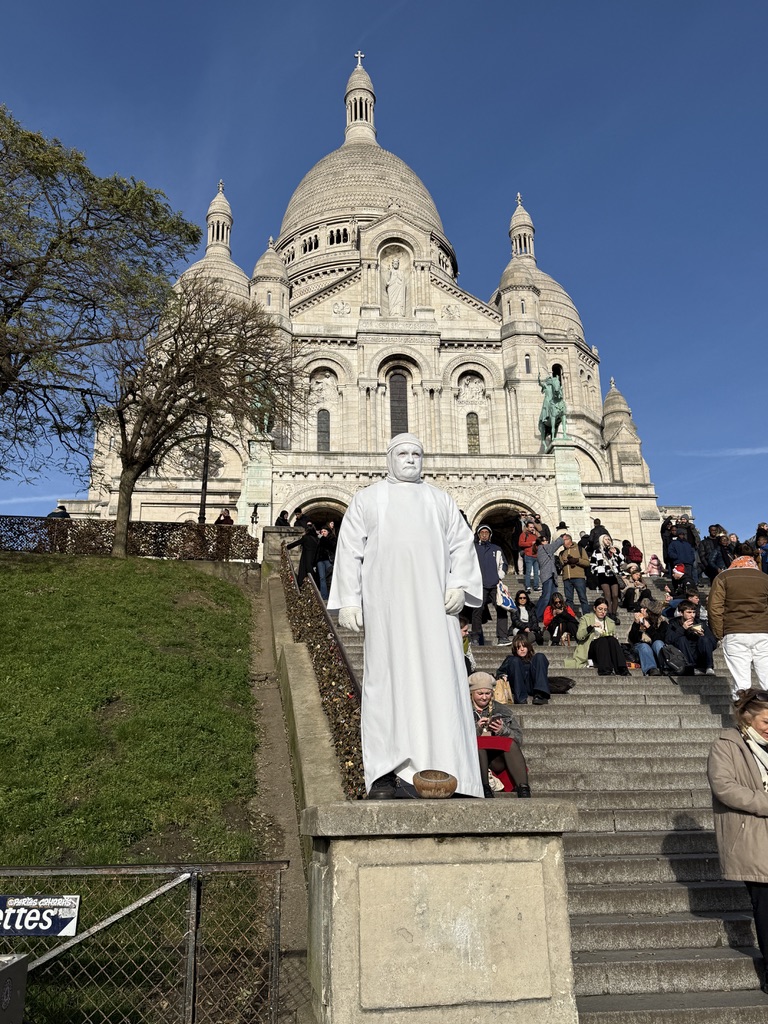 From what I was able to glean from the Internet, while waiting to enter Sacre Coeur, the basilica was first proposed in the late 1800s after the defeat of France and the capture of Napoleon in the Franco Prussian War. Apparently, Napoleon blamed his defeat on France’s moral decline and proposed the formation of a new church dedicated to the “sacred heart” of Jesus. The building was conceived before the outbreak of the Paris Commune, but it wasn’t constructed immediately. And since it was to be built at the highest point in the city, overlooking the area where the Paris Commune began, it remains for some, even today, controversial with politicians on the Left because it symbolizes the reactionary politics of the time.