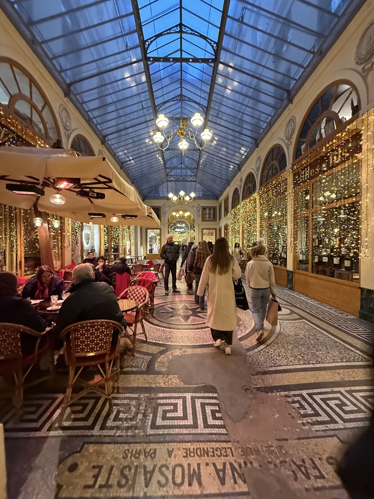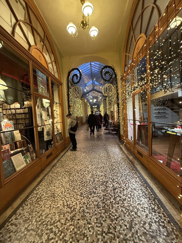 From there I walked to the Passage Vivienne which is a wonderful set of enclosed walkways roofed over with glass. It too was very decorated (tastefully, I might add) for the holidays. I strolled the Passage… and then walked to the Bourse Metro station and headed back to the hotel.