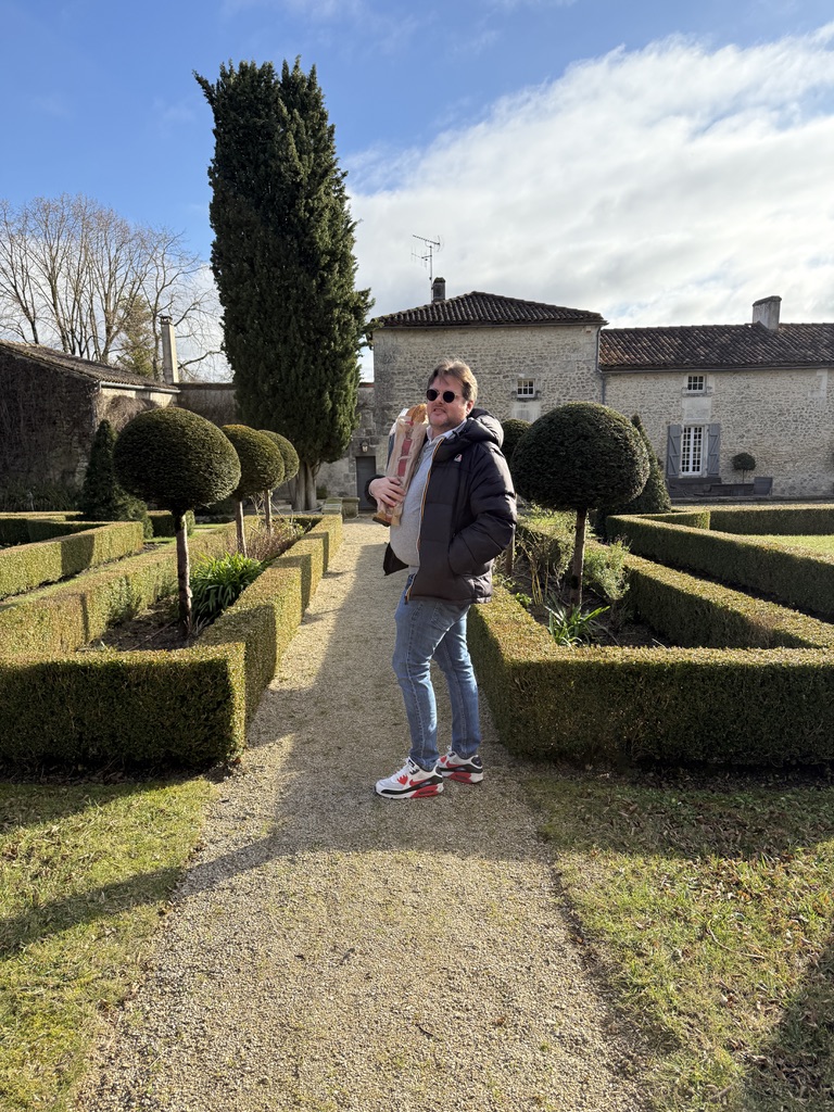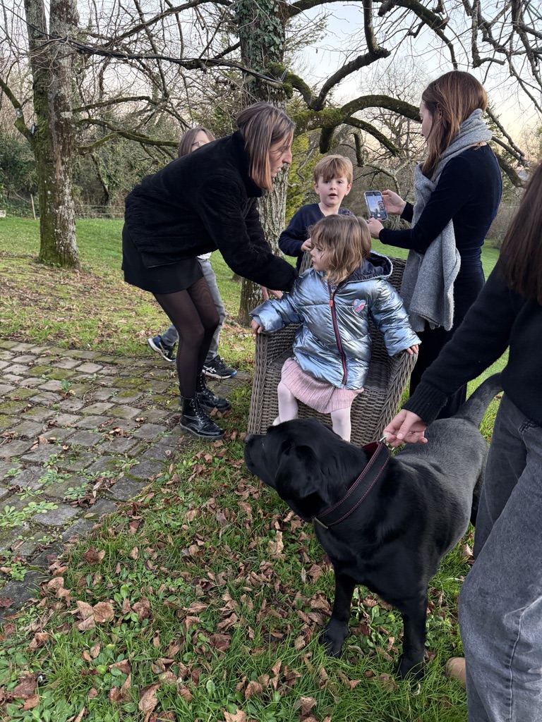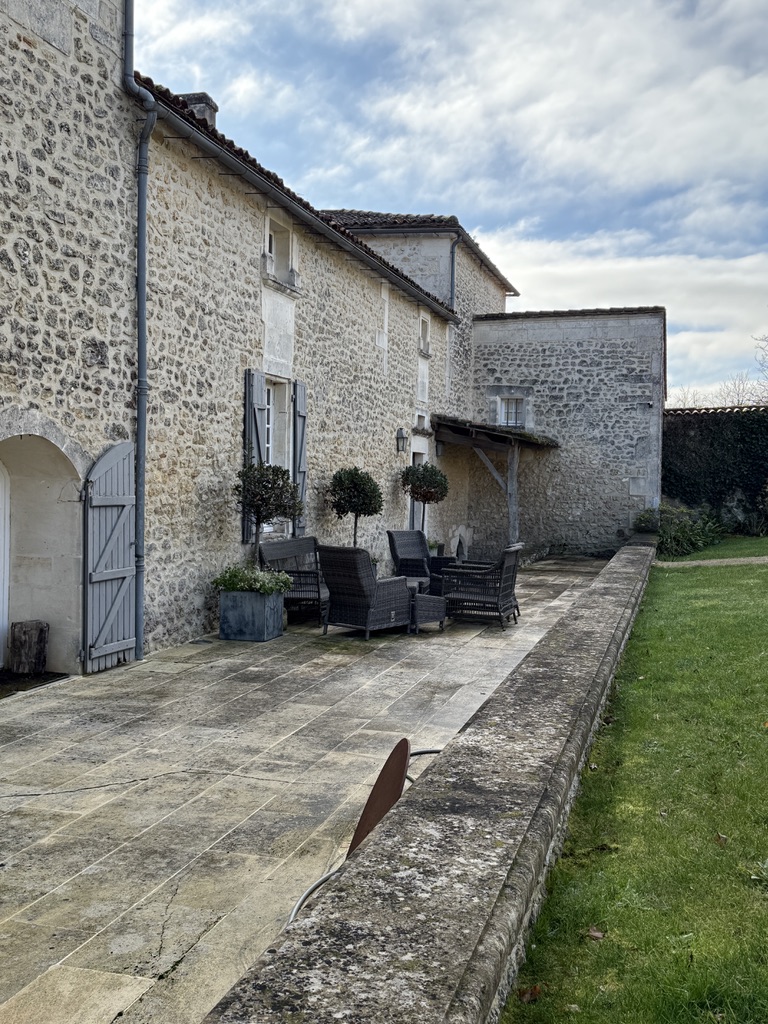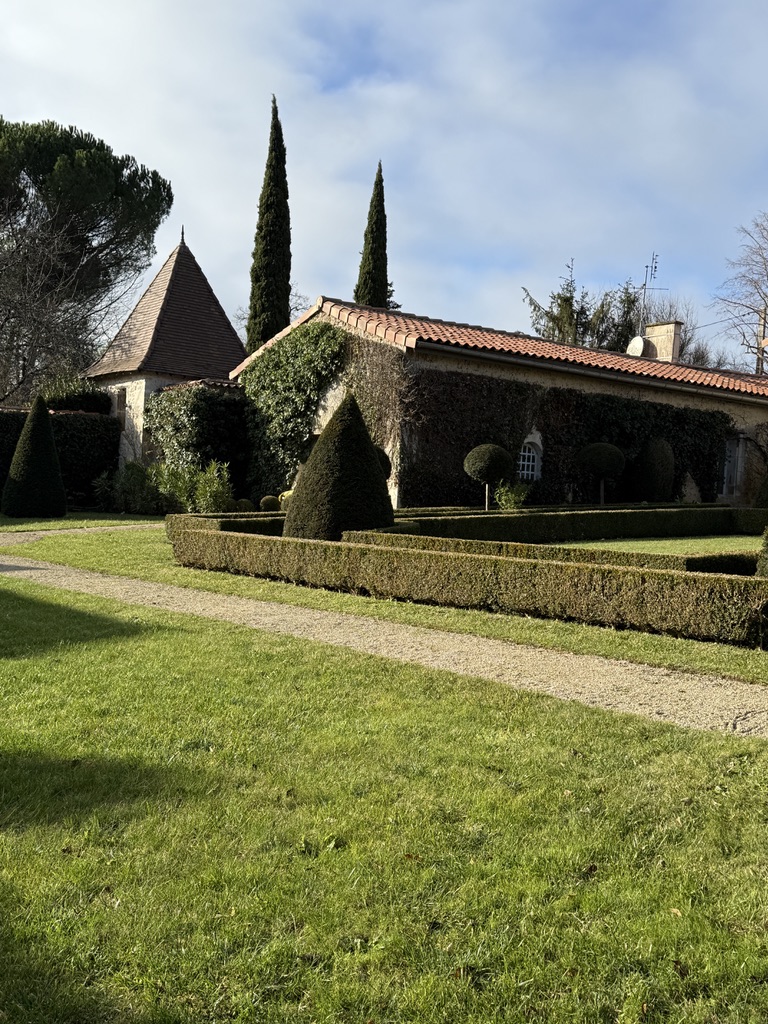 Katerine lives (part-time, I think) in a sprawling “homestead” with several stone buildings built originally about 900 years ago (and renovated on the inside numerous times). The property is exquisite and includes a landscaped garden in the English tradition with hedges that form a maze of sorts. There is a lovely terrace and a large field and a swimming pool. Inside the stone house are about five bedrooms, sitting rooms, living room(s), dining room, and numerous foyers, and a wonderful large, modern kitchen. We were given a tour of the house by Margaux (one of Katerine’s grandchildren who is about 8, I think. She doesn’t speak English so the tour was translated for us by Ella who is 5 and Louis who is 7). They had a definite plan for how to see the house which started from the gardens and around the outside and then the inside, including all the bedrooms and bathrooms.