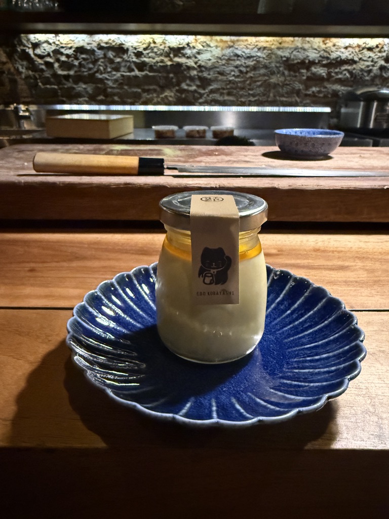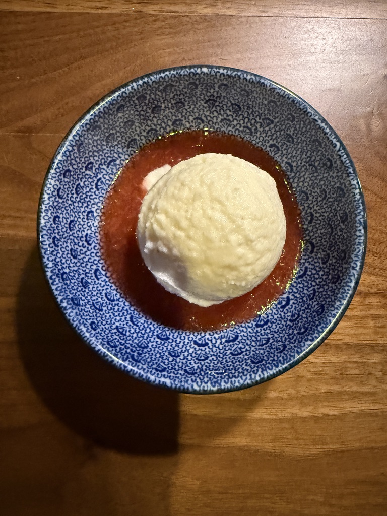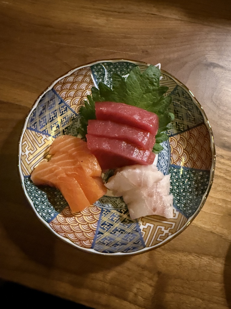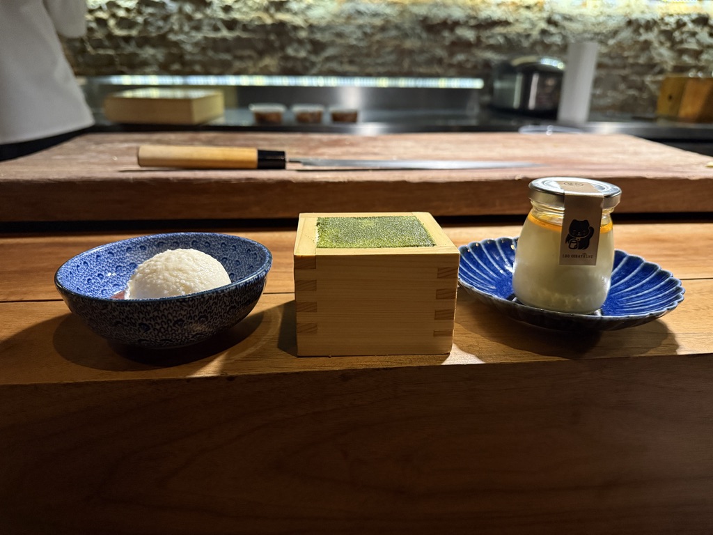 Every dish was perfect ….and a little work of art. In addition to mouth-watering sashimi, the restaurant serves little mini-yakitori style items. We had a huge variety of these very small plates including (each skewer has about three little morsels) edamame with a wonderful dressing; little one-item skewers with duck, shishito peppers, zucchini (which they called pumpkin on the English menu), mushrooms, chicken, cherry tomatoes wrapped in pancetta, pancetta rolls with amazing spices and tidbits of fruit inside, and a few other items I don’t remember. And we had wonderful sake, so smooth you could hardly sense the alcohol content. Of course we needed to end the dinner with dessert so we ordered three of the four options: matcha tiramusu served in a perfect wooden cube, something called fawa fawa (a pudding made with lychee and matcha and some other ingredients and served in a little jar, and a scoop of lychee ice cream sitting atop a strawberry puree.