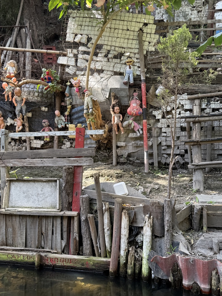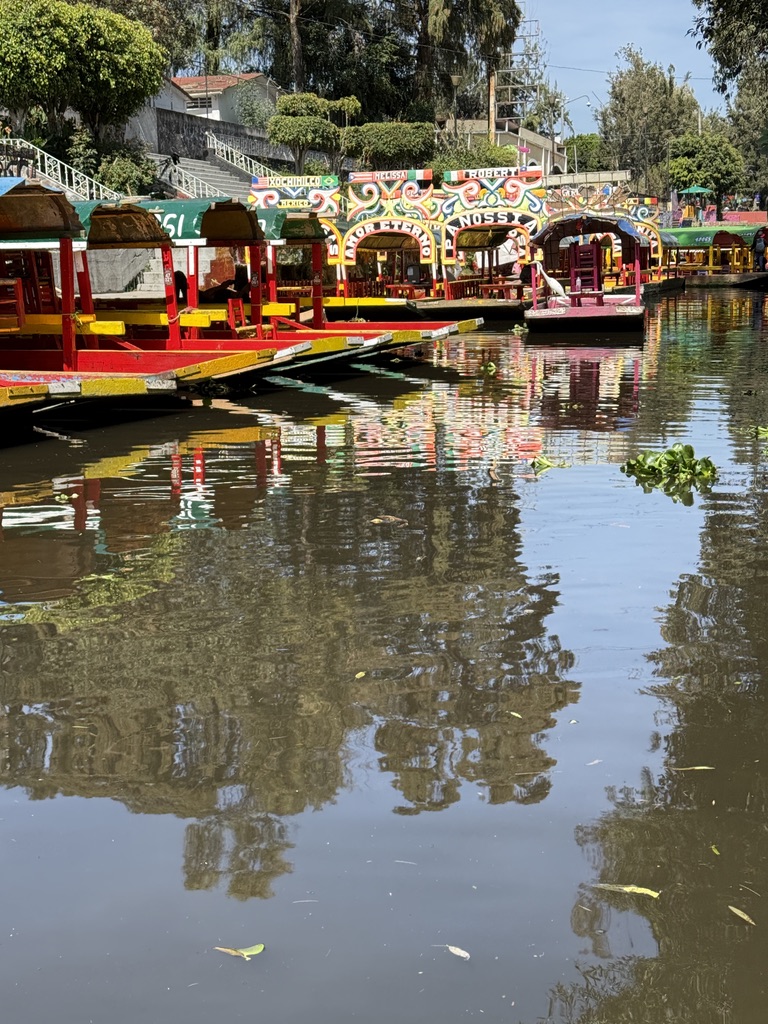 We hadn’t planned to go to Xochimilko, so we didn’t fully figure out what was possible. As we approached, we remembered that this was where the Island of the Dead Dolls is located, and asked to get a boat to take us there. But alas the time needed to get there and back was too long, so we just travelled through one section of the canals. Next time, Island of the Dead Dolls! We also tried to get pesos at a bank near the boat area, but the ATM was out of money.