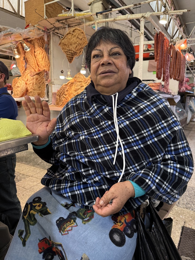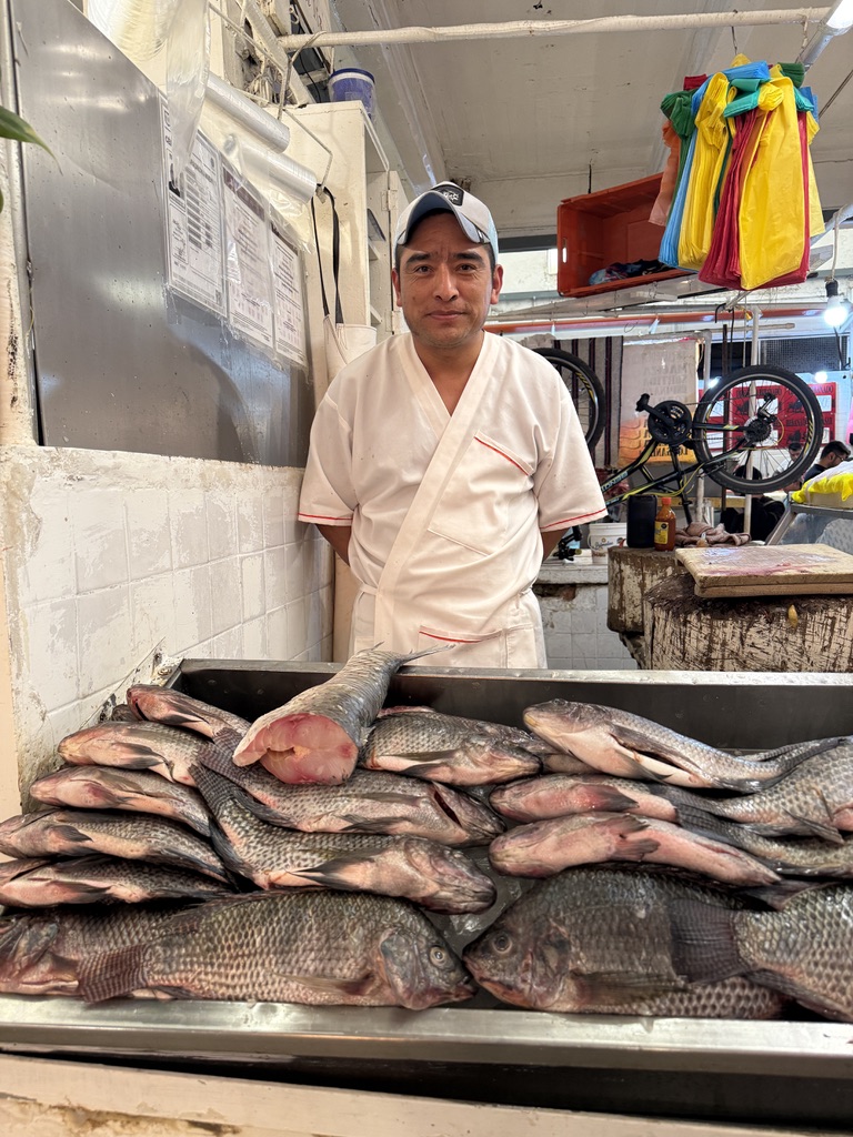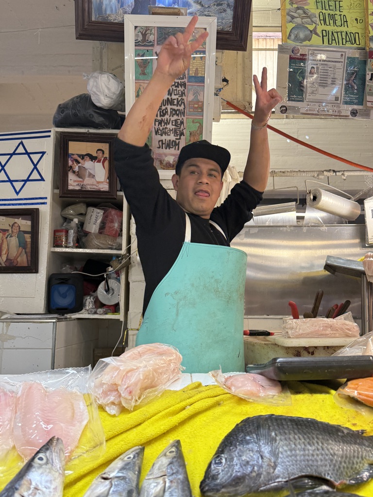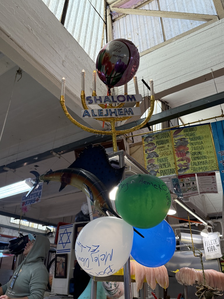 We then headed to the main market in Xochimilko which again reflects the working class nature of the area as compared to Coyoacán and other more upscale parts of the city. We strolled the market and at one point noticed an Israeli flag hanging above one of the fish stalls. So, we approached and suddenly a woman at the stall started talking to us in a combination of Hebrew and Yiddish, mixed with Spanish. Of the three languages, Spanish was my strongest…. Anyway, we asked a few questions and said “Shalom!” and went on our way.