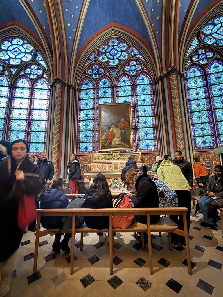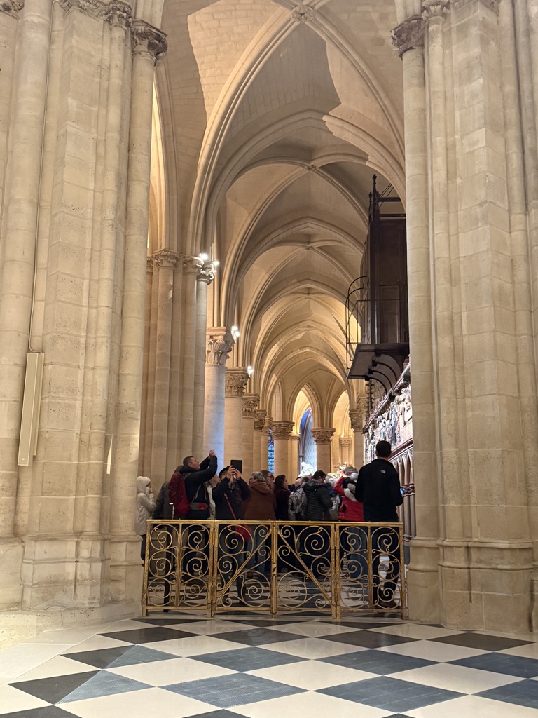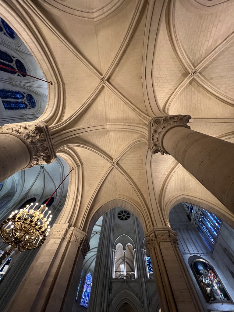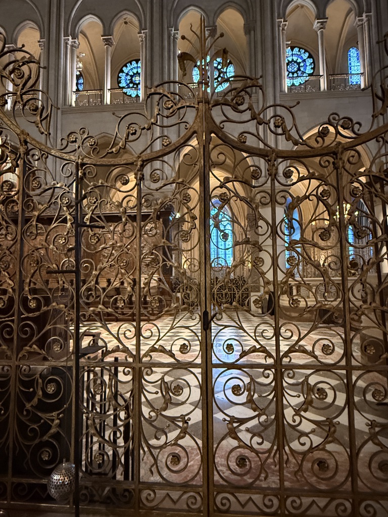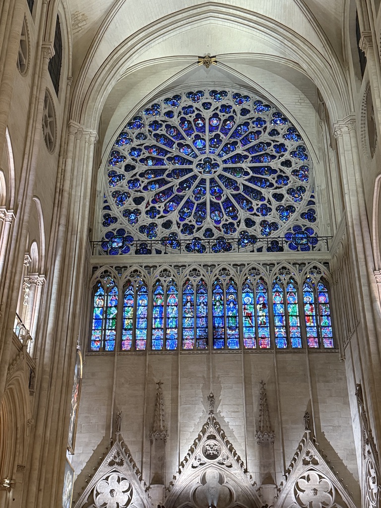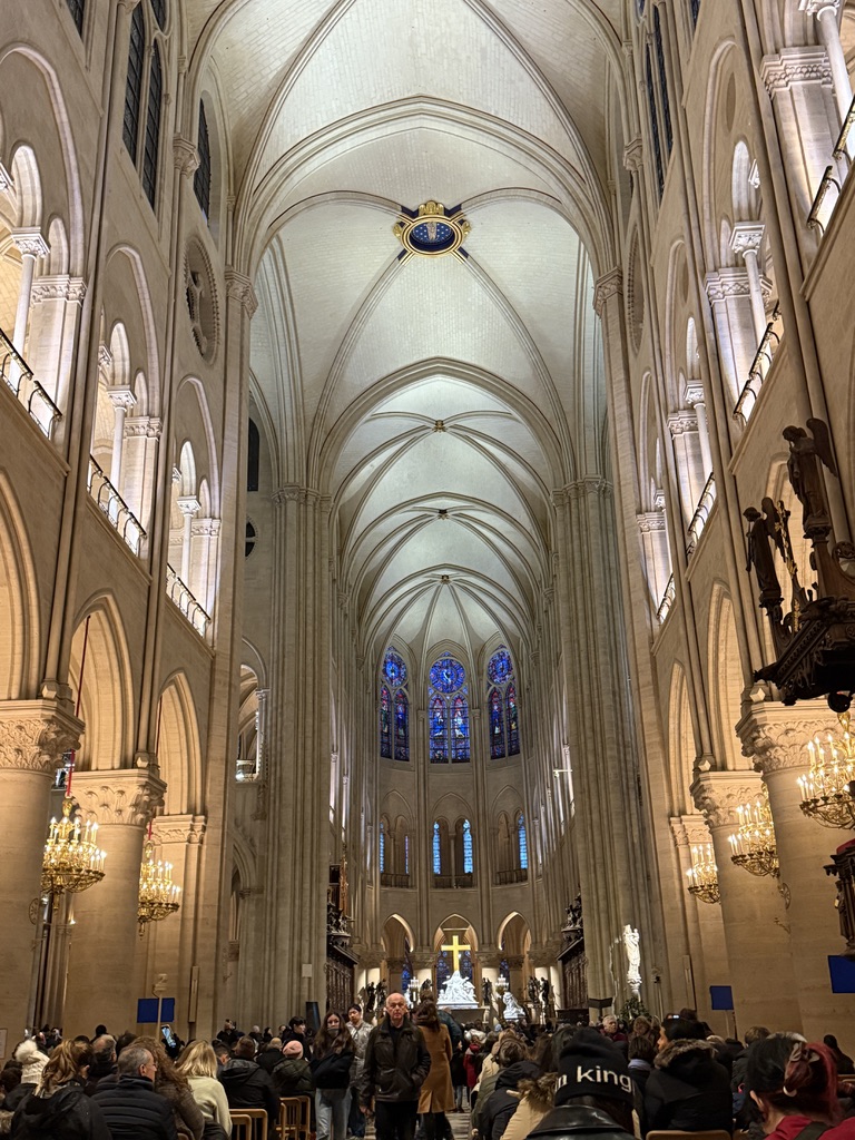 Hard to say much about the “new” Notre Dame…. First it’s totally packed with tourists. Hundreds of thousands of selfies being captured each minute, I’d guess. Throngs of people trying to capture the moment ?? It’s a bit strange to see it all shined up like this; everything very white and crisp. After all it is 860 years old. Not sure how people who are religiously affiliated feel about it. Somehow it didn’t feel as much like a sacred space, which I think it did on prior visits when—you sensed the history and there were moments without throngs of people. They’ve also added lots of chandeliers with fake candles and flame shaped bulbs which were throwing off a lot of light which enhanced the brightness of the space. So that too took away from the more mysterious feeling of past visits. I think they could have done a better job with the lighting using some kind of hidden reflective lights,