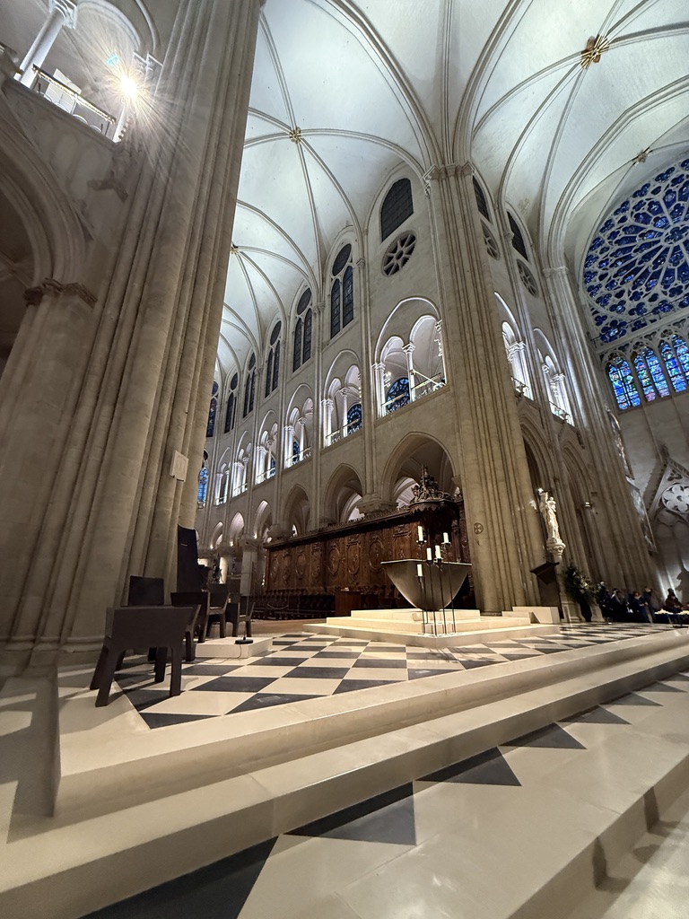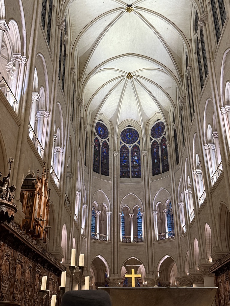 Still, it was an amazing feat to use the same methods of construction and repair that were used centuries ago. Probably would have been good to have some kind of model and photographs that depicted “then” and “now.” The restoration has taken five years which seems like a miracle in and of itself given the devastation caused by the 2019 fire. Most of the roof and spire of the cathedral were destroyed and only about one third of the roof remained. The remnants of the roof and spire fell on the stone vault that was underneath, which is really the ceiling of the cathedral; some of the art suffered smoke damage.