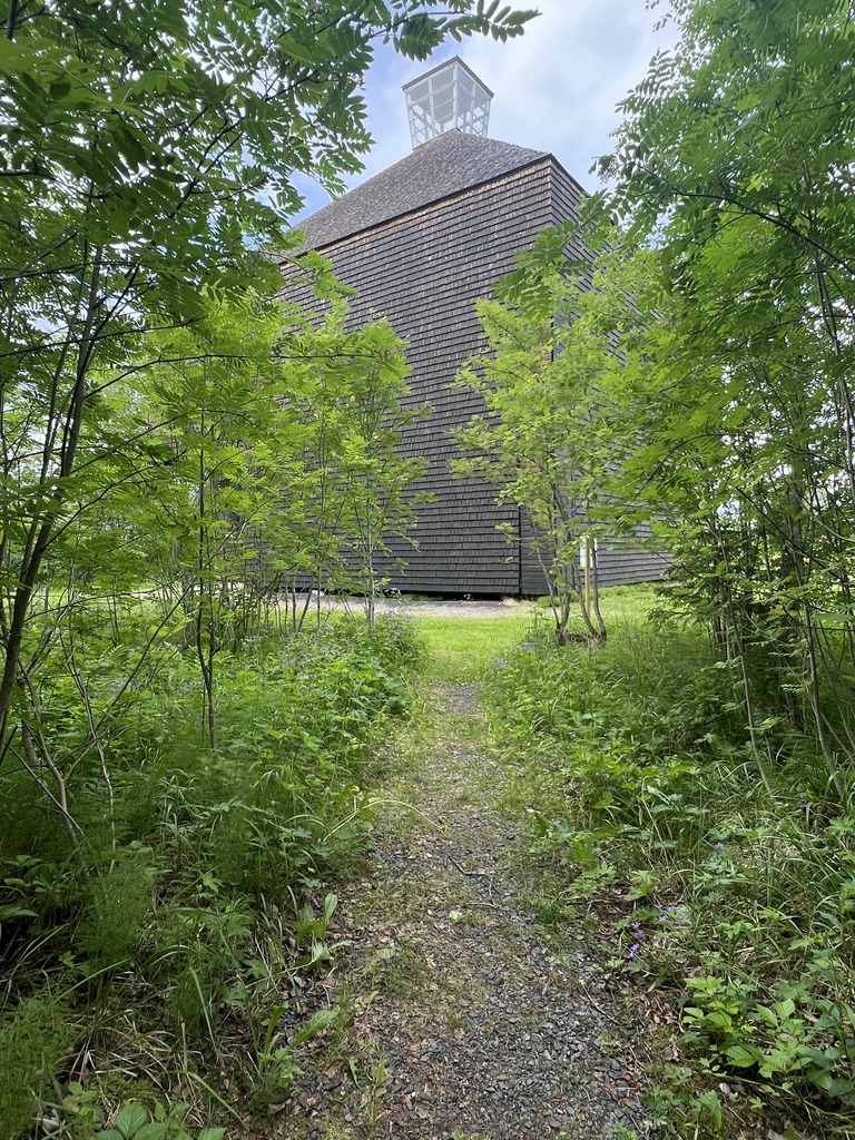 Anyway, we had considered driving to the church when we were planning the trip a few weeks ago and reached out to find out if we could get inside since we knew it was a pretty special interior. We couldn’t find a contact for the church, so we sent an email to the city clerk; we figured that in a town of 2,500 people, the city would be able to either tell us what to do or have the information. It’s pretty rural out there so I knew getting a response in English might be dicey. I did get a response saying that the person I reached out to no longer worked for the town. So, without knowing whether or not we’d get inside we decided to make the drive anyway. In the end, we could only see the church from the outside, and peek in to see the interior. But it was still worth it. Nestled in this little forested area, a stone’s throw from a stream, sat the shingle church.