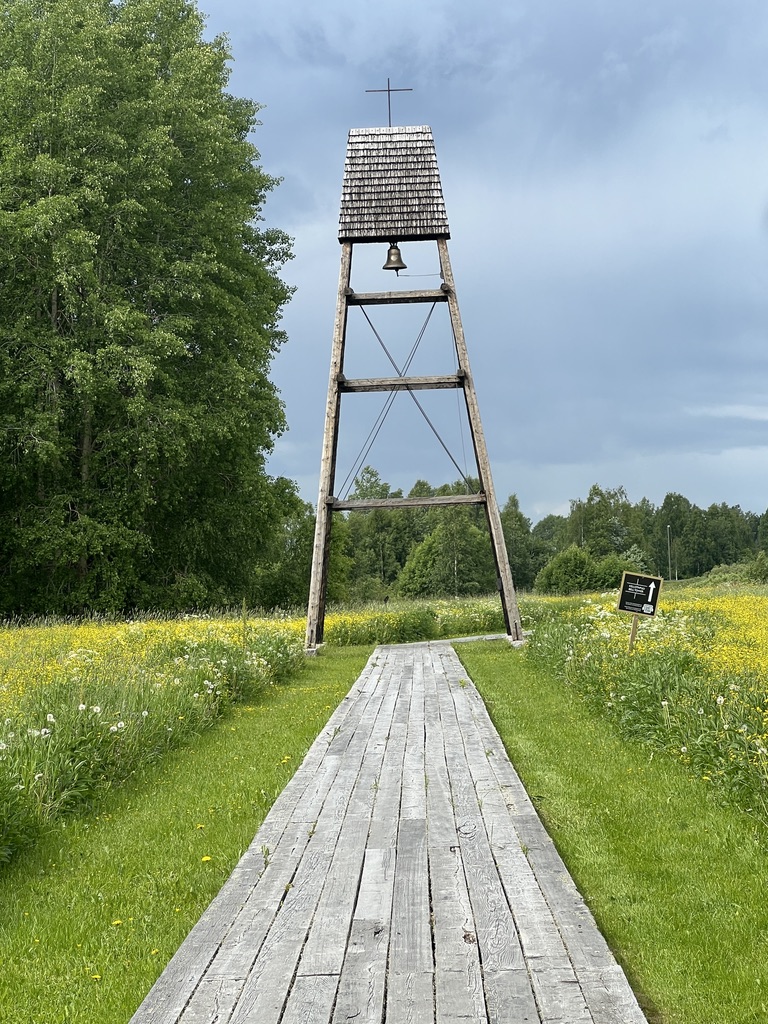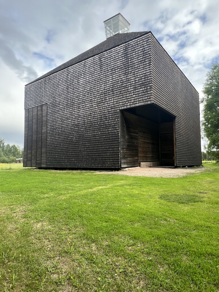 The story of the church is interesting. In 1999 the local municipality, sponsored an open student competition to rebuild the original 1765 church that was demolished in 1841. There weren’t any documents showing the original appearance of the building, so the competition, which was organized by the Department of Architecture at the University of Oulu, asked for entries that would create a new, modern church using traditional 18th century methods. The final design of the church, the award- winning solution, is based on Anssi Lassila´s winning entry “Cantata.” The task was “to design a contemporary sacred space to be constructed with traditional handicraft methods.” The goal was “to achieve a sense of serenity and sacrality, an ecumenical atmosphere that would feel compelling and natural to all people.” The building style emphasizes the natural roughness of the wooden elements which were all hand crafted.