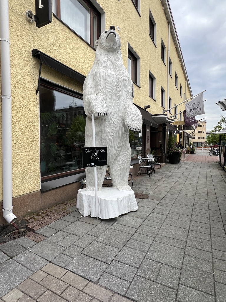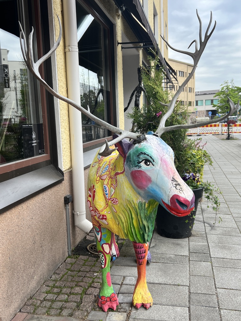 We then headed to Rovaniemi and here we are. Just finished dinner at the hotel. We hadn’t planned on that and strolled to check out two restaurants, but many restaurants are closed on Mondays, so the hotel turned out to be the best bet. Tomorrow we will explore Rovaniemi. Last time we were here–about 15 years ago– we had come from the far north—having crossed into Finland from Norway at the most northern part and drove down to Rovaniemi.
