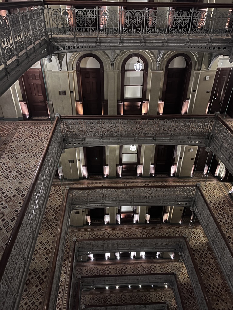 New York was fun, sort of relaxing, and filled with lots of eating—starting at Le Gratin, a new restaurant by Daniel Boulud located on the first floor of The Beekman Hotel (where we stayed). Le Gratin is fashioned as a Lyonnais restaurant; it was perfect for us—the food was good, the atmosphere was casual, and we could just roll out of the room and head for dinner after checking in. And The Beekman is always a delight—a Queen Anne–style building from 1888, built a short walk from the Brooklyn Bridge which was opened I believe in 1883. The Beekman has a magical atrium that soars nine stories high that you really sense when having drinks in the bar (Temple Court). The following day (Dec 21) we set out separately— I headed to the Whitney (not my favorite place, but I wanted to see the Harry Taylor show). Taylor’s work was interesting and also complicated to see the political nature of the work ensconced within an institution frequented primarily by an elite class. Nonetheless, the work is worth seeing although more potent as historical statements (and perhaps a statement overall that history should not be forgotten and that we haven’t moved as far as we think we have).