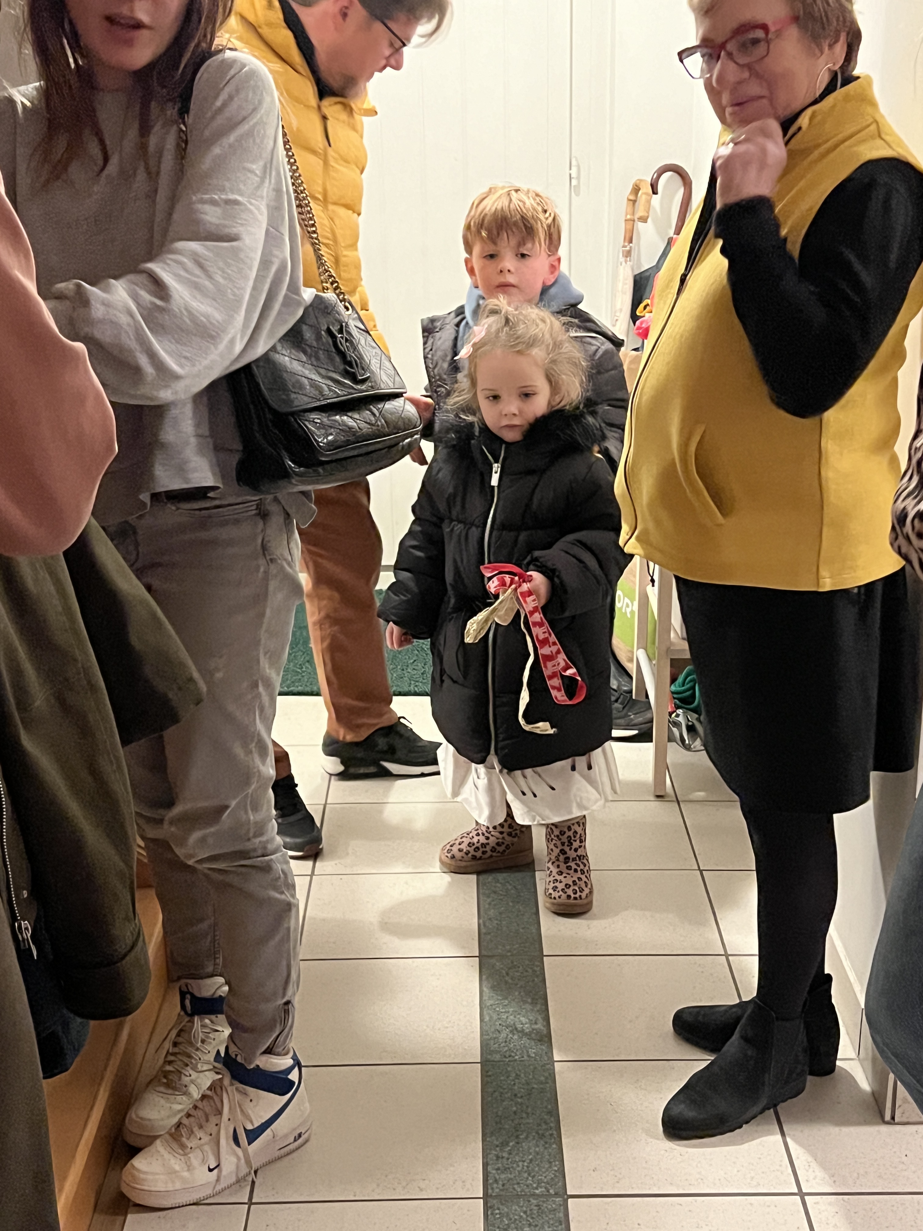 Then we headed to Newark Airport to fly to Geneva. In many ways the flight from the East Coast to Europe is less comfortable than flying from the West Coast. The NY-Geneva 7.5 hour flight turns out to be more difficult to sleep than the 12 hour flights. Once you’re settled on the plane, the meal arrives and then you’ve only got about 3-3.5 hours to go — not long enough to sleep, but you’re tired. So –at least in my case—I felt more tired arriving in Geneva than usual. And of course you arrive very early (7:30 am) so it’s too early to check into the hotel. We strolled a bit and then settled in the lobby until our room was ready. Then we quickly showered and unpacked and headed to Elizabeth’s to watch the kids trim the tree. Julia and Julien and their three kids (Louis-6, Ella-4, and Siena-1) live in Geneva; Emma, Hem and Finn (almost 5) live in London.