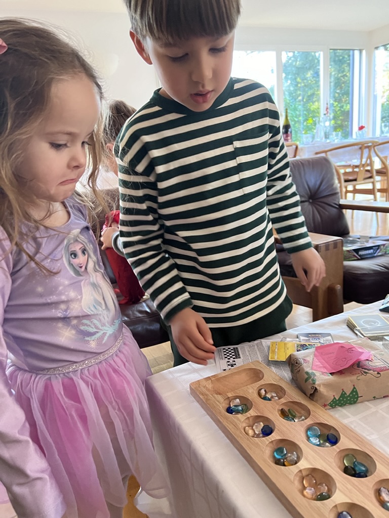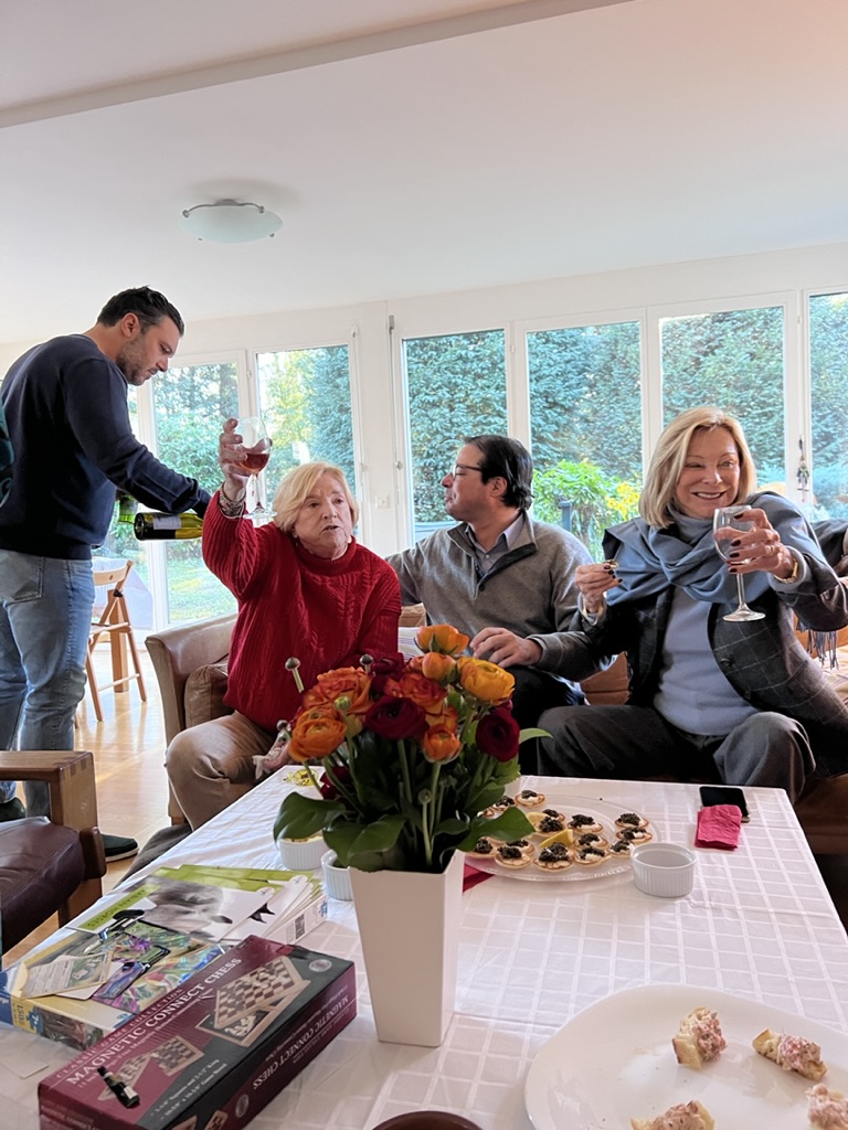 Today we headed to Elizabeth’s house in Carouge for Xmas Dinner. Carouge is about 2 miles from the center of Geneva and easily reached by tram (or you can walk—about 35 or 40 minutes). We’ve often walked but given that we needed to bring all of our gifts, we opted for a taxi. Dinner included all of us, plus Julian’s mother and aunt and cousin and an old friend who lives in Geneva but has lived in many places in the world. His English had a distinct American accent—turns out he lived for three years in Miami. Total was, I think 11 adults and 4 kids; Siena stayed home with the nanny,