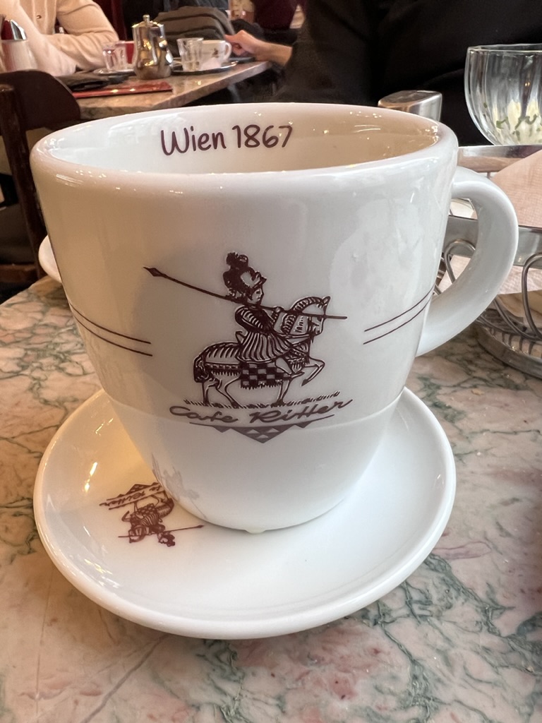 We began this morning with a quick breakfast at Cafe Ritter, one of Vienna’s oldest cafes… from the 1880s…. probably same waiters as when it opened. And in some ways time seems to have stood still — cash only (none of this weird plastic money and certainly no digital funds). It’s a hangout for many old timers and also some hipsters who seem to like the vibe.