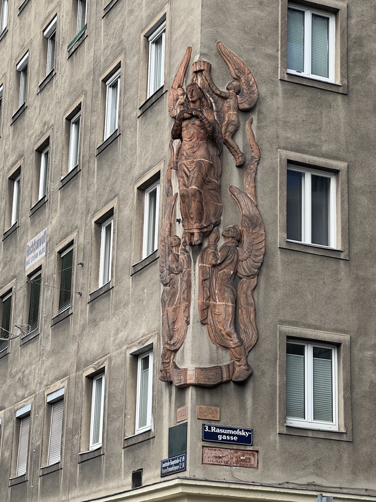 There are four female statues on the building that symbolize “liberation, enlightenment, child welfare, and physical culture.” According to my limited research, the mayor of Vienna stated at the opening of the building: “When we are no longer here, these stones will speak for us” and “The Karl Marx Hof – look! – that’s a piece of Marxism!”