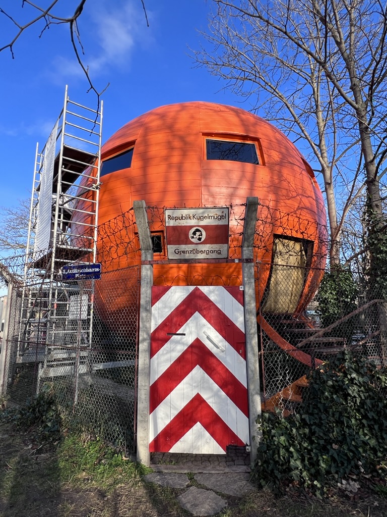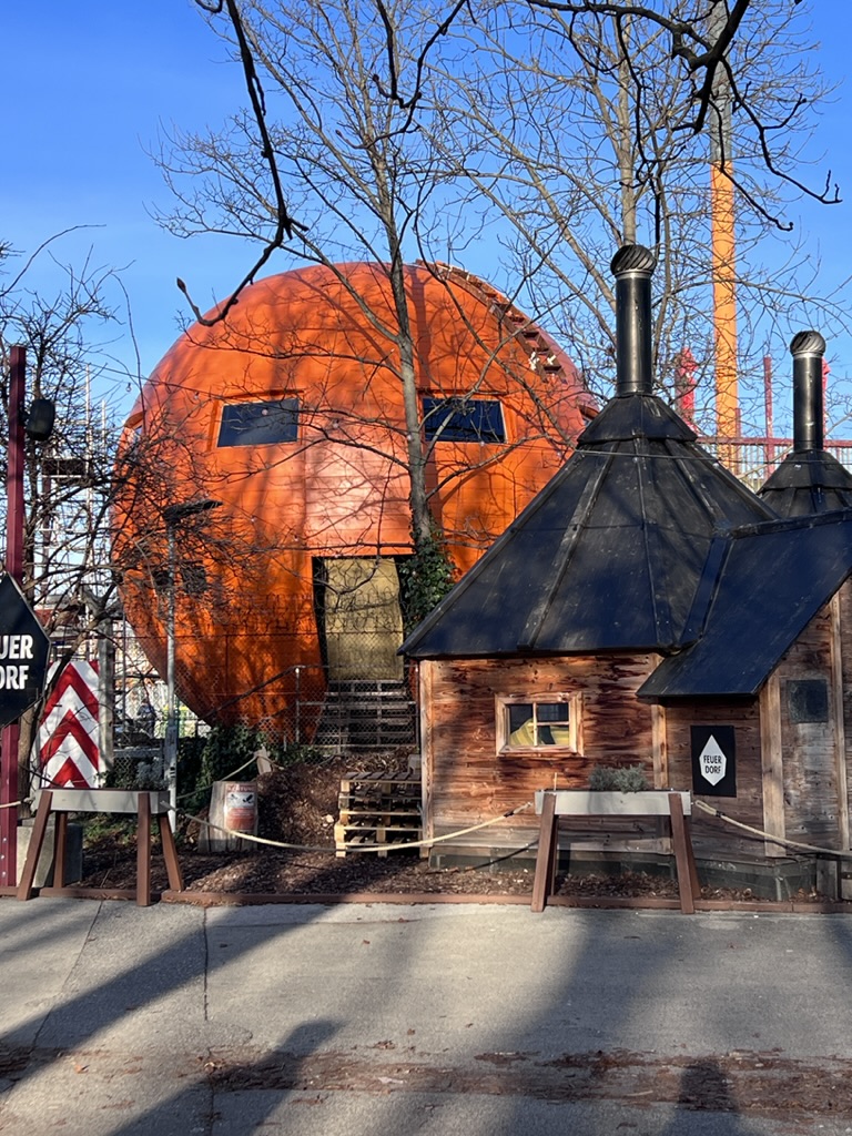 Yet another structure that was controversial in a different way—Kugelmugel or officially “the People’s Republic of Kugelmugel” is a “micro-nation” located within Vienna. Apparently, it came about because of a dispute between an artist (Edwin Lipburger) and the officialdom of Austria, because the building would be spherical. It was built in 1976 and declared itself a sovereign nation, to bypass the codes. Some years later it was moved into Prater Park and is surrounded now by an 8’ barbed wire fence. It is the only address within “the Republic” and is located on a short street that the “Kugelmugel nation” named “Antifaschismusplatz.” Although Lipburger died in 2015, the Republic officially says its population is more than 650 “non-resident citizens.” It looks sort of like a big basketball sitting on the edge of the park where today there are amusement park rides.