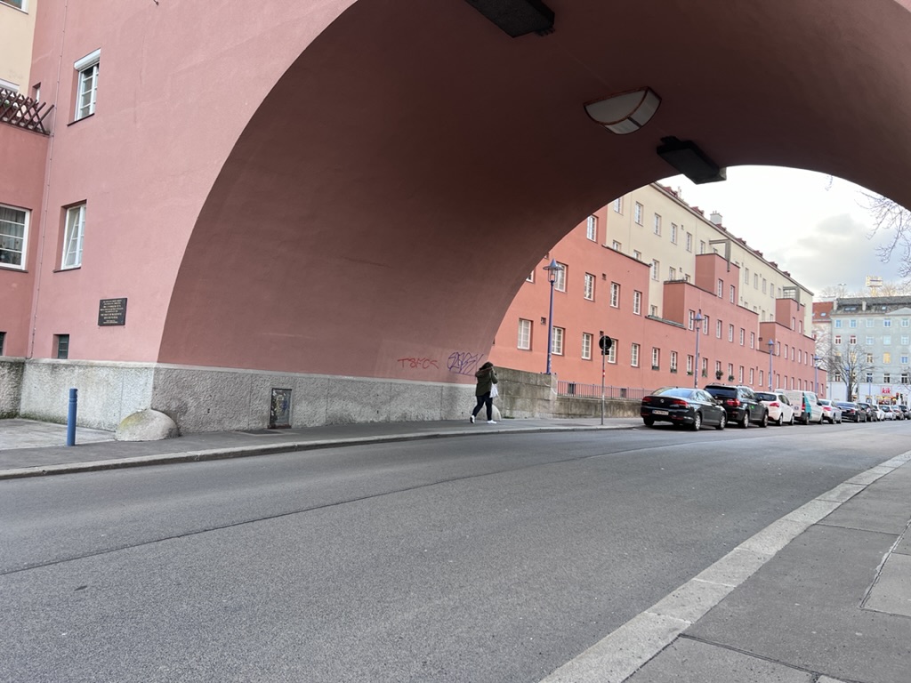 There are about 5,000 people living at Karl Marx Hof. It was considered innovative for its time, with laundries, showers, two medical clinics, kindergartens, dental clinic, a “mother’s advice center,” a library, a youth home, a post office, and a pharmacy…among other amenities. There was also an “advice center for interior design and housing hygiene.” In the 1930s the Karl Marx Hof was a center of resistance against Austrian fascism. But after the Austrian Social Democrats were eliminated, the building was renamed, but still the signage remains.