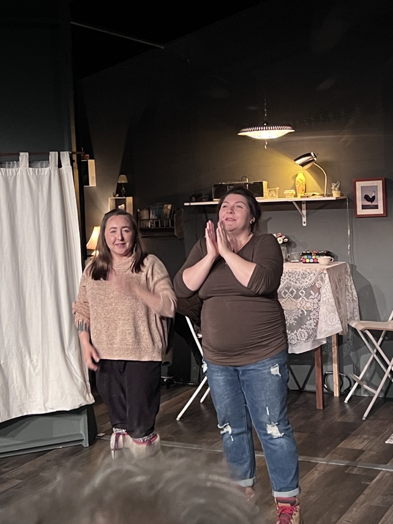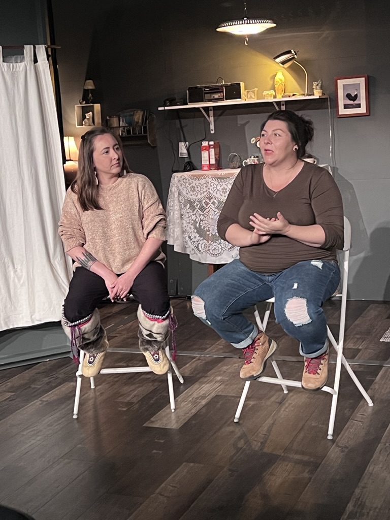 Basically, the play focuses on the daily lives of a few women from Nunavik (far north Quebec and home to Inuit people) whose lives move from the north (where they live with their ancestors on ancestral lands) and the south (where they must go in order to advance educationally). The dialogue is often intimate as the women tell stories of their history and the richness of their culture. And they always talk about the importance of silence as defining their very being—silence they can only experience in the north. Throughout the play they also mention cooking Bannock (and they are actually cooking it throughout the performance (and they serve it to the audience at the conclusion of the performance).