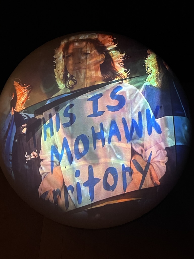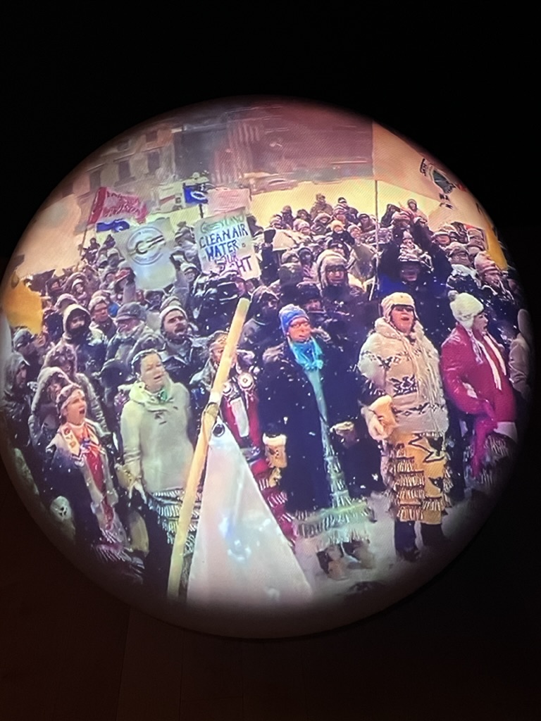 Images project across the facade of the house, which serves as a screen, and there is also a soundscape of footsteps walking and breaking the snow on the ground and also wind sounds. In the words of the “script,” the audience is invited “to listen in order to see better.” It was an incredibly powerful play performed by Inuit activists who “opened” the door of “the house” at the end of the play to invite questions from the audience, which also proved very interesting as the two performers talked about the difficulties of holding onto their native language, of having to leave “home” in order to become more educated, and the conflicts related to whether or not to return to the very small villages of their background. They talked about the fact that it was illegal to speak their language just 50 years ago and what impact that had on the continuity of their culture. And they also talked about a nickel mine that has been trying to lease land owned by First Peoples—promising jobs and cash, but potentially destroying the Intukitut lifestyles and environment. Thus far, the people in the 200-person town has stood strong and stopped the development.