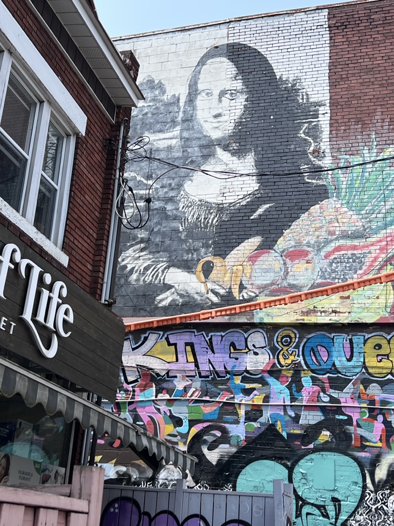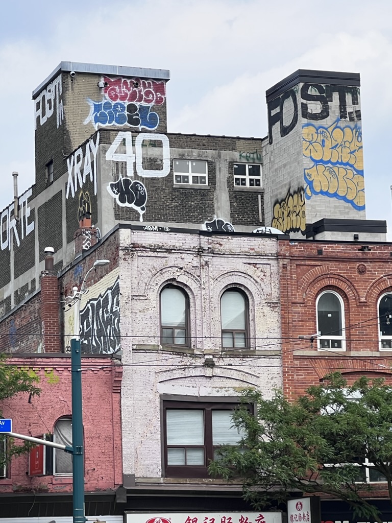 After a sufficient dose of “art” we walked through the neighborhood which edges on Toronto’s Chinatown and continued on to the Kensington Market area. Kensington Market is more of a multicultural neighborhood than a market. It’s an older neighborhood which was designated a National Historic Site of Canada about 15 years ago. One journalist wrote that “Kensington today is as much a legend as a district.” During the early 20th century, it was the home to Eastern European Jewish immigrants. It was overcrowded with densely packed houses and one of the poorest areas of Toronto. During that time, it became known as “the Jewish Market” where Jewish merchants operated small shops that sold items that were imported from the homelands where the immigrants were from.