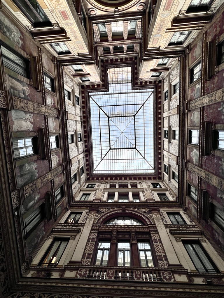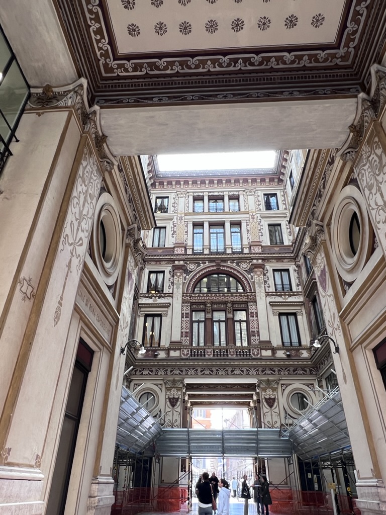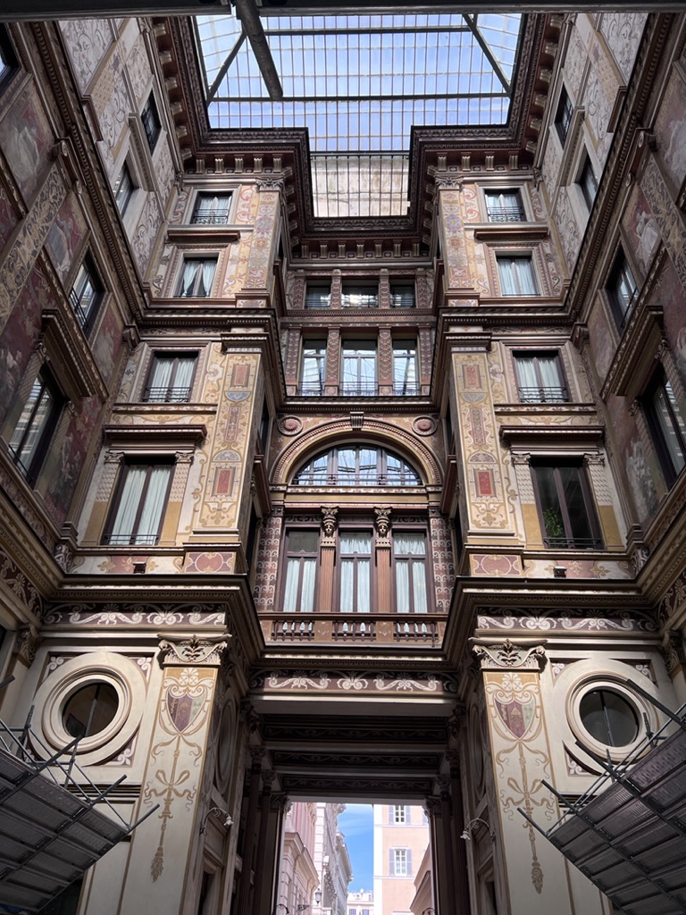 Began our day by walking from the Donna Camilla to the Galleria Sciarra, a wonderful building with a covered walkway – a private courtyard that is actually open to the public, and which is not visited by many tourists and actually I think little known except to locals. It’s an example of Italian Art Nouveau–lovely, but unfortunately when we got there (we had never seen it before) there was a lot of renovation going on so it was a bit difficult to truly appreciate the Gallery in all of its glory. But still it was great to see.
