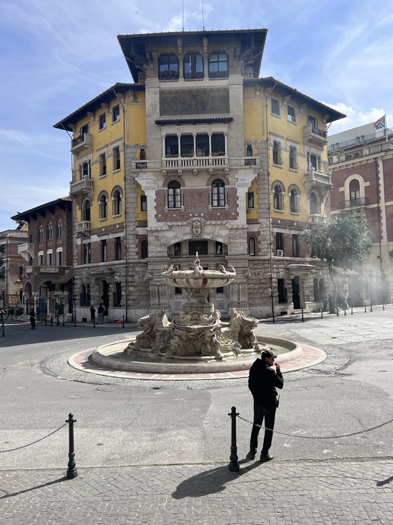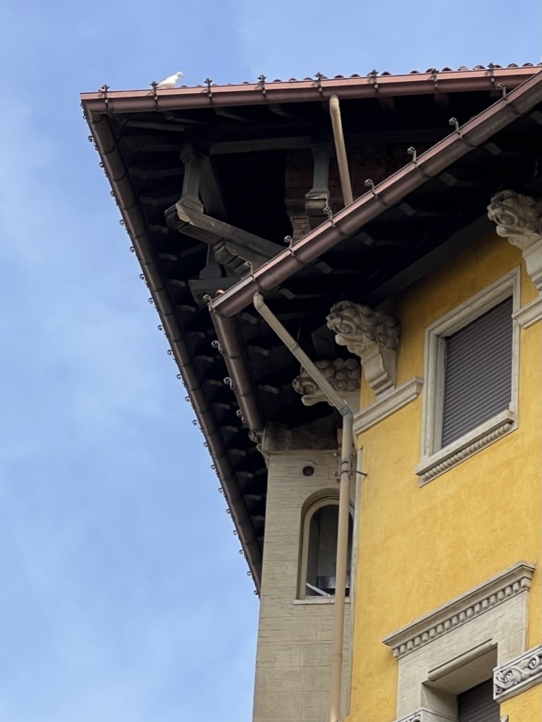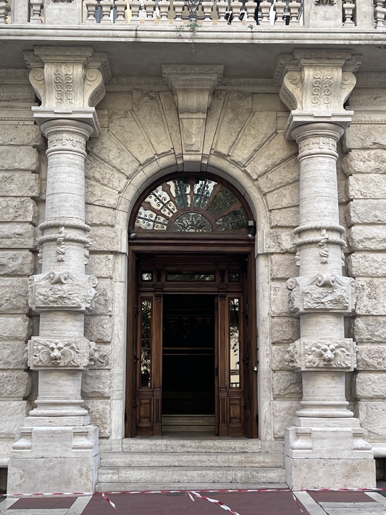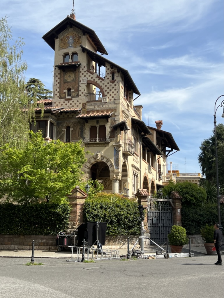But there is always a glitch… On this day, and for a few more to come, they are filming some 1920s italian movie (maybe something very Mafia-oriented) and thus one of the most wonderful buildings in the area and the famous fountain with the frogs were inaccessible—we could see them but could not get close. Street were blocked, but it was great to see all these people in period costumes from the 20s (wonderful dresses and coats) walking about, and getting in and out of 1920s vintage cars. Still we were able to see and get up close to many other houses in the area. Coppedè has apparently been the backdrop for many films in the past decades.