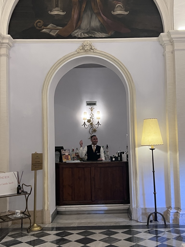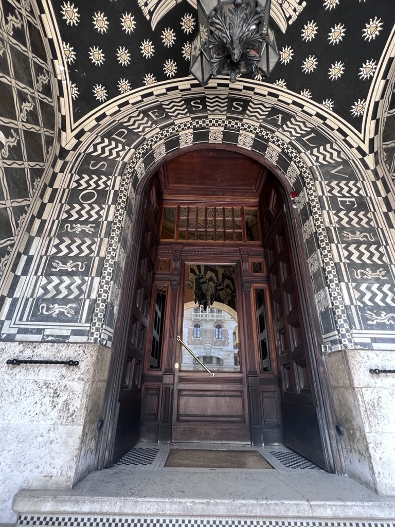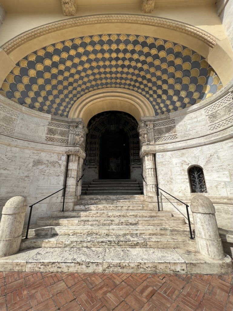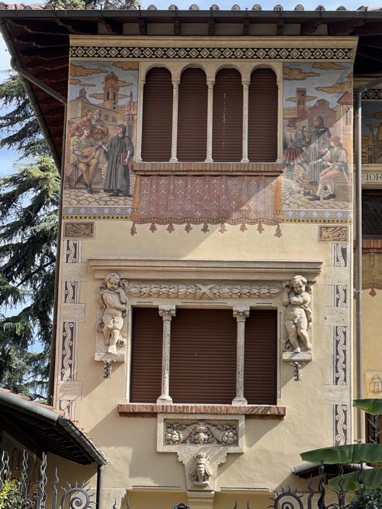 The entry into Coppedè has a very dramatic arch, but the filmmakers had also commandeered that, making it difficult to photograph. I should note that many of the buildings have very impressive frescoes. We were in awe of the whole setting and am still amazed by the craftsmanship and abilities of the diverse artisans needed to create these special places—a big contrast to what we produce today. Then again, I don’t think I’d have the stomach for this in great quantities. Think Gilded Age!!