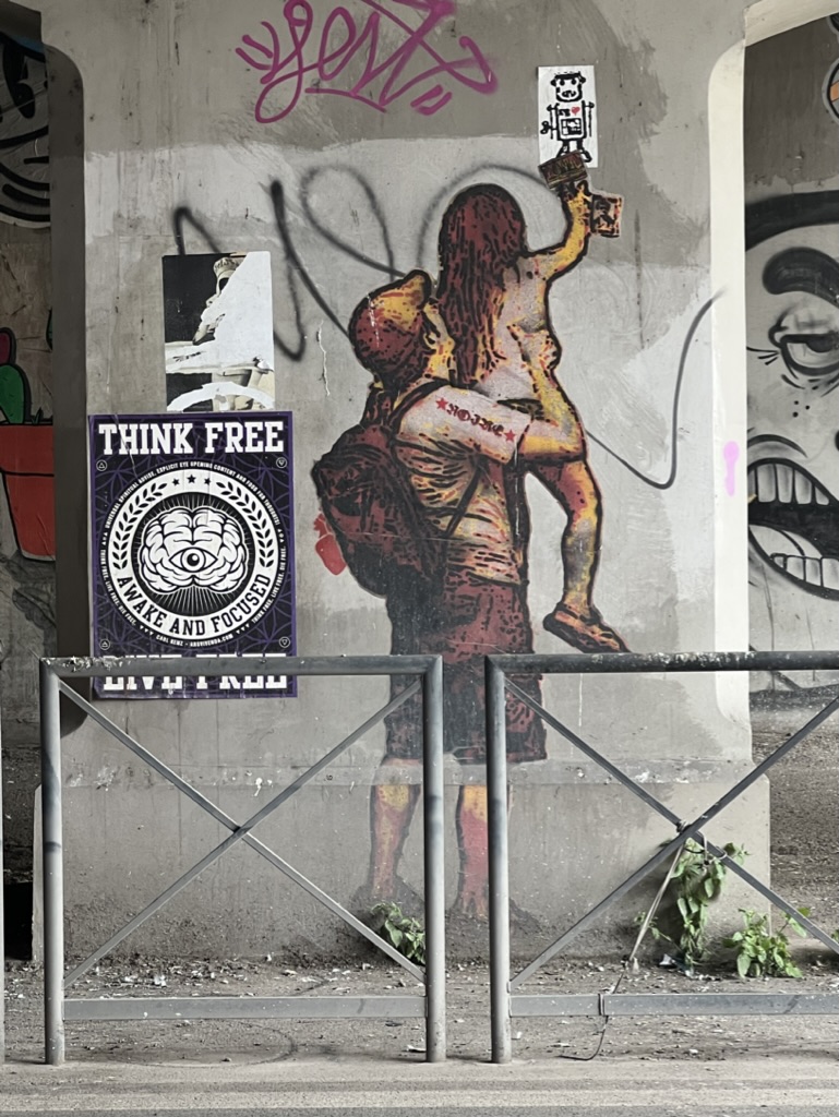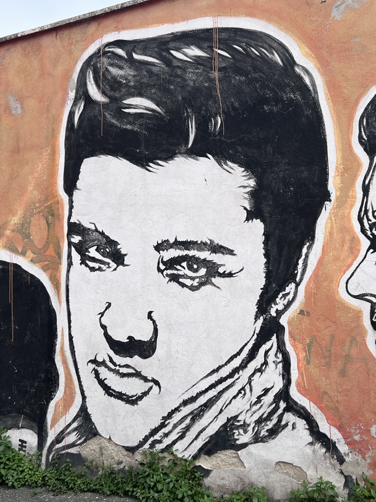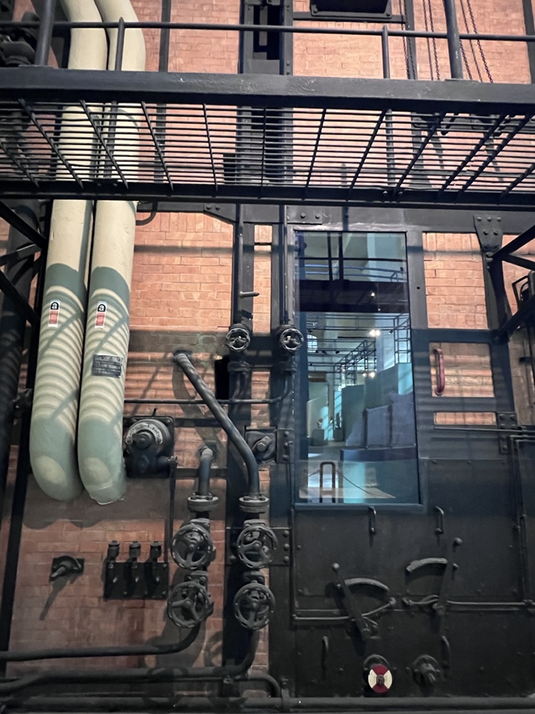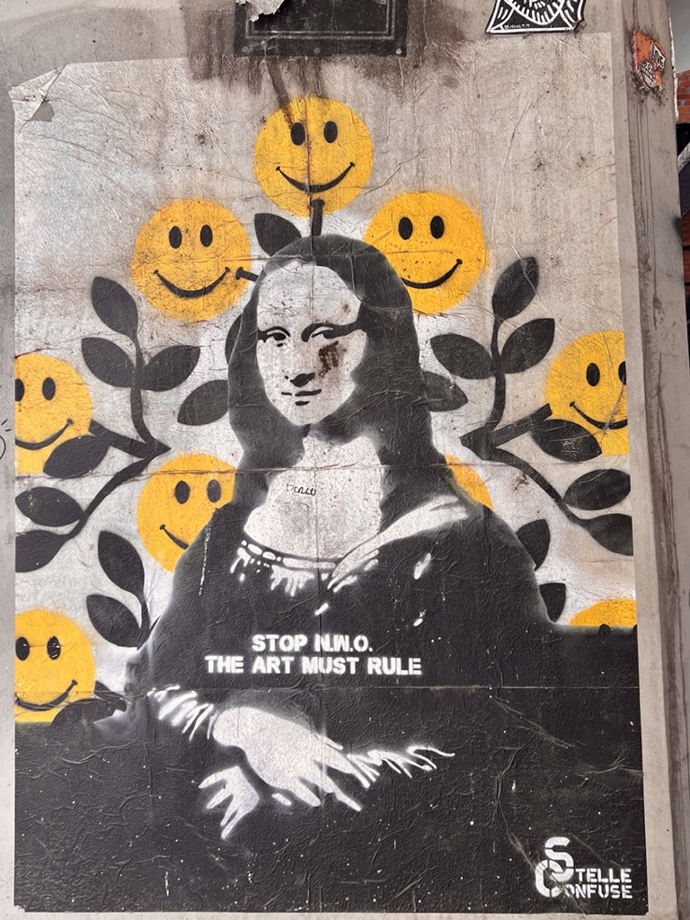 Then we walked to the Ostensiense neighborhood which is known for having a lot of murals and graffitti. It, too, was a former working class area and is now borderline chic. The neighborhood was the location for a lot of Rome’s industry and there were major power plants in the area as well. One of those power plants has been turned into a museum, which I am certain the designers and curators had a lot of fun creating. Much of the original machinery remains (now painted black) and all sorts of white marble sculptures (figures) uncovered throughout Rome from the Renaissance and Baroque eras, stand in front of the machinery—great contrast. The “museum” is called the Centrale Montemartini. We loved it—the contrast (and similarity?) between the machines and the sculptures was great: both beautiful and requiring a good deal of artistry. Nearly all of the male statues were missing their penises (broken off) … not sure what that’s about, but I’m sure one can do some research and find some academic who has studied this issue.