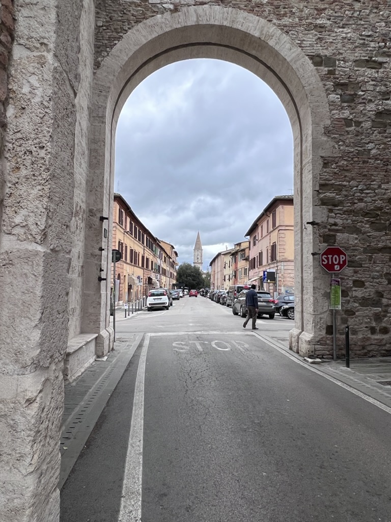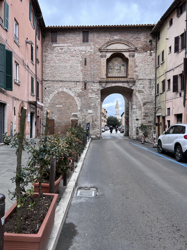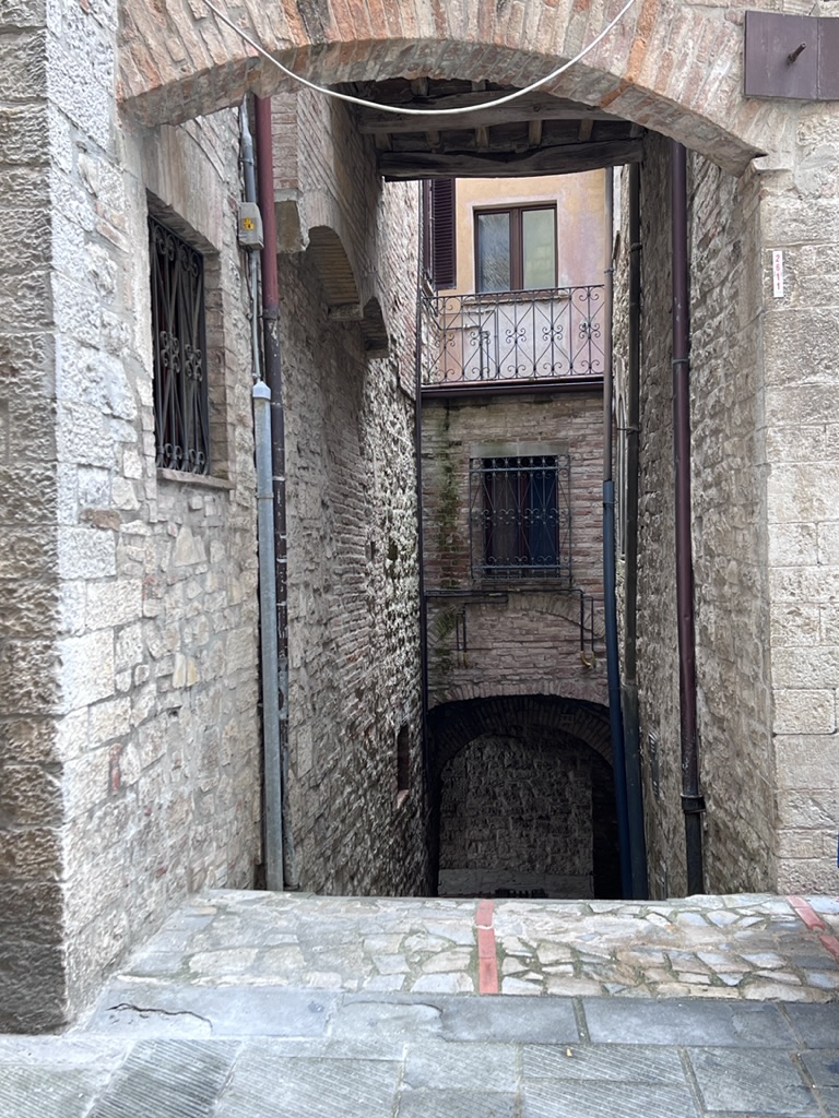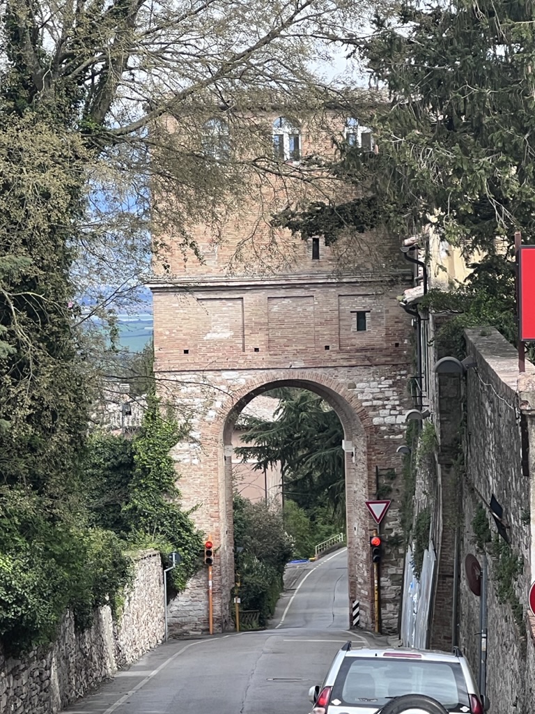 Not wanting to eat a lot, we opted to share three different dishes—each of which were wonderful and thankfully, very small. Before we could even order, they came out with three exquisite tiny plates of different amuse bouche… I think that one was some kind of mushroom dish with potato foam. We also had a squid dish that was prepared in some kind of vinegar—very very yummy. There was also a pate of squab that had foam made from beans and a strawberry reduction. Despite the small size plates (actually large plates with small amounts of food), we were totally full at the end, probably because of the high caloric count. If you are headed to Perugia, put this place on the list—probably for dinner when you have more time to linger. The place was tiny, or so we thought. We ate in the front room with just 9 tables, but when I went to the ladies room upstairs there were two other much larger rooms as well as the one we were in. By the way, we walked past (and actually into the entry way) of a shooting school and range that has been in operation for about 200 years. It was quite interesting as the translated version of their materials explained the organization’s commitment to gun safety and to shooting/guns as a sport and not as weapons; guns are left at the range and only used for either sport or gaining accuracy or for hunting. The range is a teaching location and all members go through lots of training and constant renewal training.