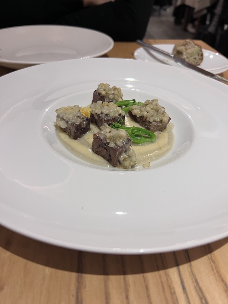 We parked car in the public garage in Perugia and then walked for several hours checking out the town, which has many not-very-interesting buildings from the 1800s or so. With 8 times as many people as Todi, you can sense the fact that it is simultaneously a university town, a government center, and an industrial center of the region. We passed ceramics factories and chocolate factories. It is the largest city in the Umbria region and with its old town and gothic main square, it’s known as a center for chocolate and other delicacies. We strolled and saw several large churches, but all were closed even though it was Sunday and the city was quiet. This was intended to be a brief stop and a chance for lunch. Many restaurants were closed, but we lucked out in that L’Oficina was open and we had a very elegant destination meal. L’Oficina serves really creative, artistically plated dishes—all of which have a lot of ingredients that I cannot possibly remember.