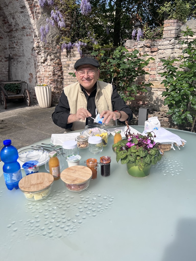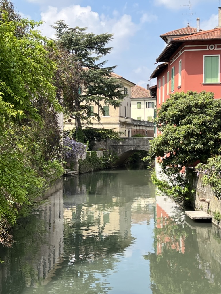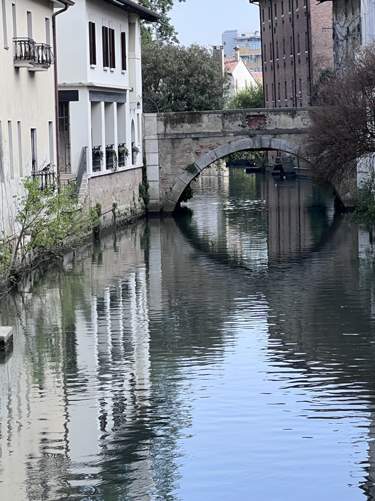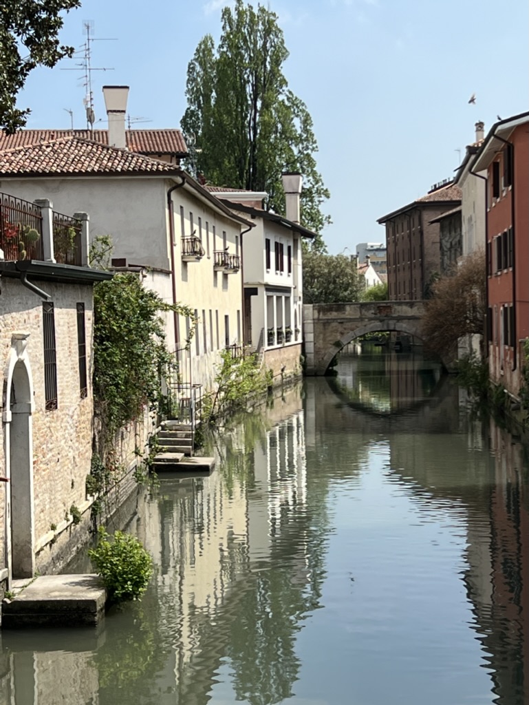 We left our little nirvana in Padova after a delightful breakfast that came to our door, once again, at around 10:00; today we took the “box” to our private outside patio, which was perfect. We got on the road at about 11 and headed to Trieste, but with a stop in a small 6,000 population town called Portograuro which was somewhat unplanned but totally cute with canals and wooden bridges. We ate at a little trattoria that was filled with locals, mostly families (it’s Saturday); food was good.. and after a brief stroll, we headed to Trieste.