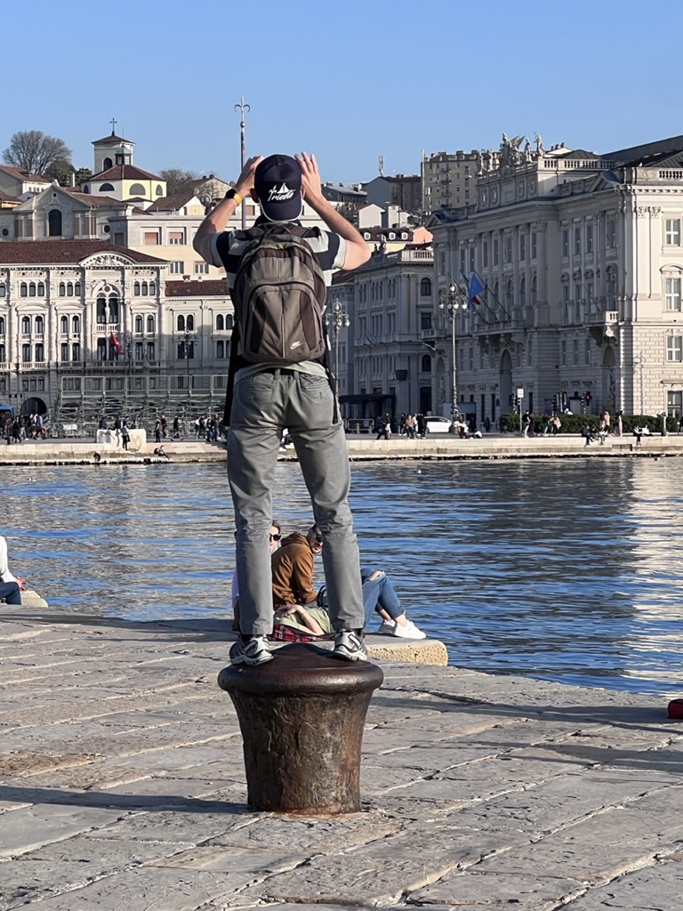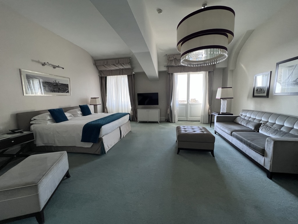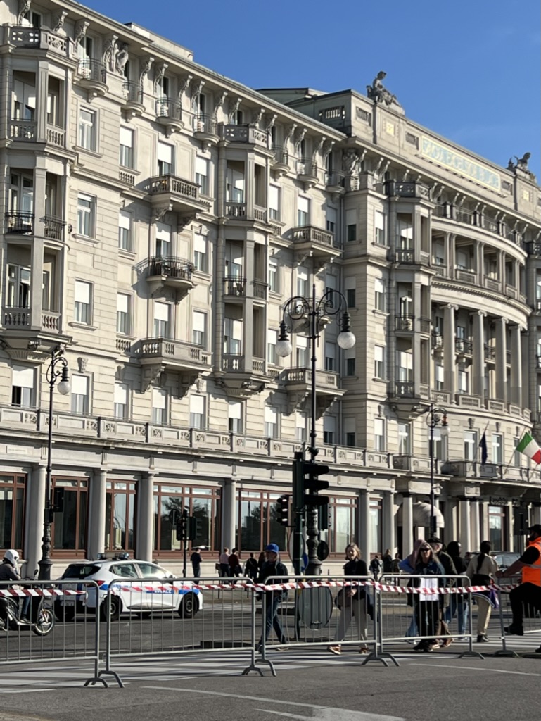 We are at the Savoia Excelsior Palace… which is like the antithesis of all the hotels we’ve been at on this trip. It’s super elegant; the building is more than a century old; it’s on the big side; our room is about 600 sq feet and we have a “luggage room” inside our room which Mike says is the size of the cabins he’s been designing for the homeless. It’s located in the prime spot in Trieste, and our room has two balconies. Ok.. the lap of luxury. Not sure how we got this room; I think we got upgraded for some reason… or maybe they upgraded us…not complaining.