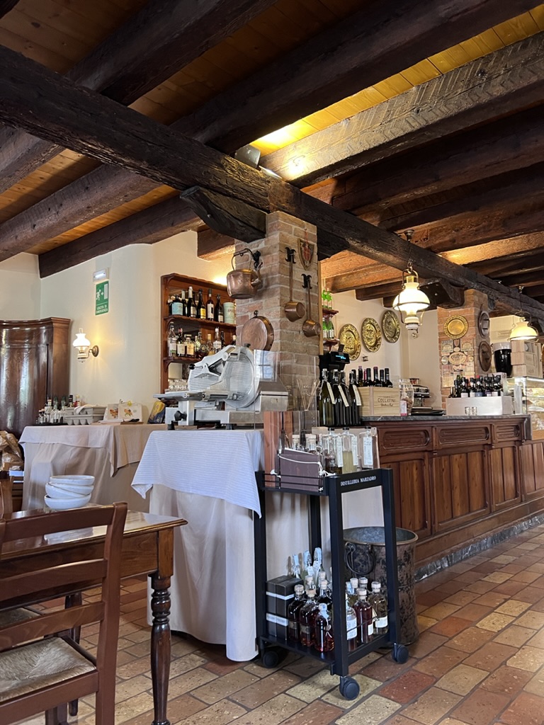 Eventually we headed to dinner—about a 16-minute walk (good to add to our steps given that we were in the car much of the day, but the walk to and from the restaurant) which enabled us to get the steps today to over 10,0000. We ate at Menarosti – a 120-year-old mainstay in Trieste. We were the only non-Italians. It’s one of those white tablecloth places with antique wall sconces and chandeliers. Everyone was local and seemed to know everyone else. We started with thinly sliced local shark that was lightly grilled and then covered with onions soaked in vinegar (great); then pasta vongole (with baby clams); then lightly grilled squid, served at room temperature with chard. All really good, very simple and oh so tasty. Yes, we could not resist the dessert so we had two —- Mike had apple strudel (I said they had some Viennese roots here) and I had tiramisu.