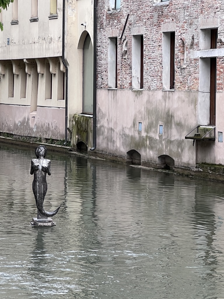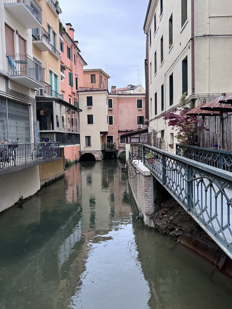 Treviso has about 80,000 inhabitants and the river runs throughout the town, so you are constantly crossing wonderful little foot bridges to get around town,