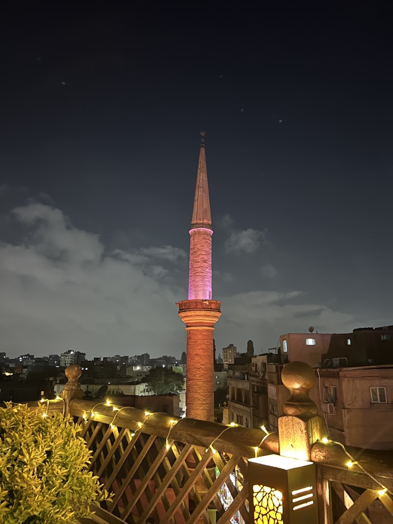 From our little terrace (yes we have a terrace from which we can see quite a few mosques) we can see and hear the life of the city, which we will start exploring tomorrow. We dashed up to the rooftop restaurant to get some dinner; I love Cairo already since even this small restaurant was serving until midnight. My kind of town. And when we finally got to our room at about 12:30 am to settle in and unpack we could hear the crowds below us, selling every imaginable item; eating in little outdoor cafes; and strolling the streets.