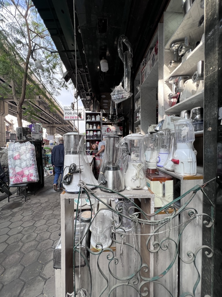 Naturally, La Pancha didn’t have any “city taxis” waiting at the entrance so we told the “concierge” we needed a taxi and up popped some guy in a fairly new car—definitely not a taxi, but also not Uber. Just a guy and a car. We hopped in and he took us to yet another drop off so we could walk into Gamaleya to our hotel. The route from this drop off took us down a street where they were selling (at 10 pm) restaurant supplies and equipment along with other household goods—selling this stuff out of tiny little spaces with all their products out on the street. Again, motorcycles whizzing by in both directions, an occasional car that got permission to drive inside, kids, pedestrians, dogs, cats – all scurrying about … and us. As we turned one corner horns were blasting (not unusual since horns seem to be the way cars move about given that there aren’t any (or very very few) traffic lights (in a city of 20 million).. .but this was different. There was a large black car and lots of people dressed up and dancing and clapping behind the car. I’m guessing it was a wedding. We sort of joined in with the crowd, and made it “home.”