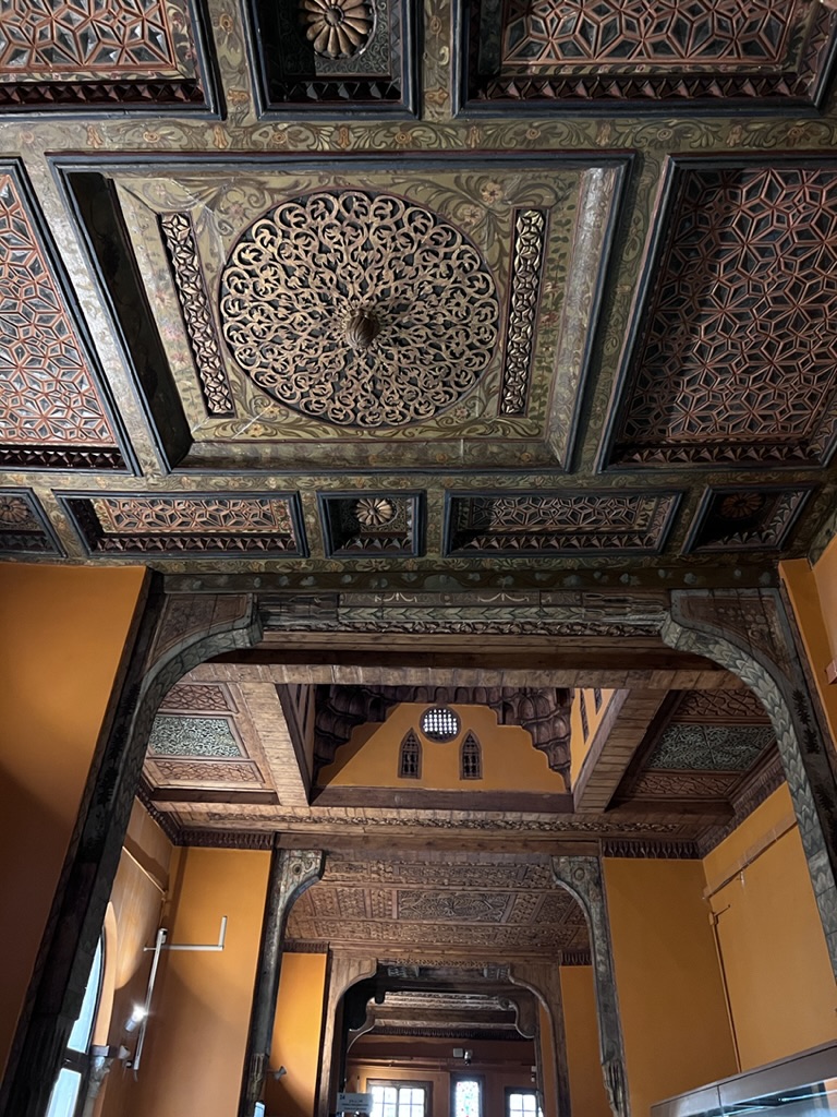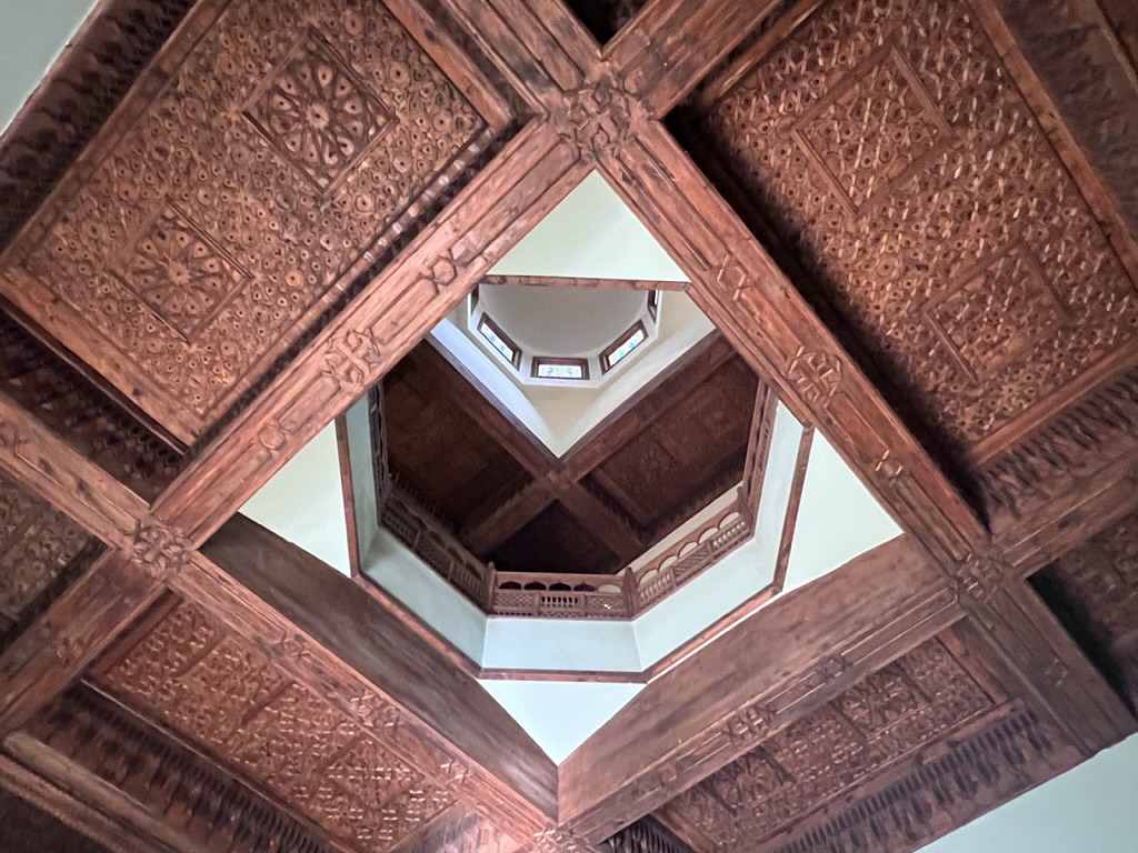 Eventually we found the Attaba station and figured out how to buy tickets (no machines, you line up at the ticket counter) and to figure out the route we needed to get to our first stop—the Coptic Museum. The subways felt much like NY, maybe NY in the 70s! The trains are pretty old and the stations are dreary. Nothing like what we experienced in Uzbekistan a few years ago, where each station was like a museum. Still, it was efficient and we even made changes because we had to go from the green line to the red line to the blue line. We are now quite seasoned Cairo Metro riders. We found our way to what is known as Coptic Cairo—a part of Old Cairo where the Babylon Fortress, the Coptic Museum, the Hanging Church, and many other sites can be found. Coptic Cairo was a stronghold for Christianity in Egypt before and during the Islamic era, and most of its churches were built after the 7th century (such young things!). The Coptic Museum is quite lovely with courtyards and many places to sit and relax. Unfortunately the exhibits are not well lit and there is an unending amount of artifacts such that it sort of all blends together. The best were the wood carved ceilings of the building that graced every room—intricate, delicate wood patterns throughout.