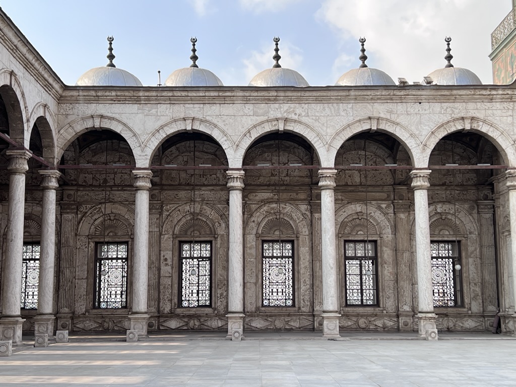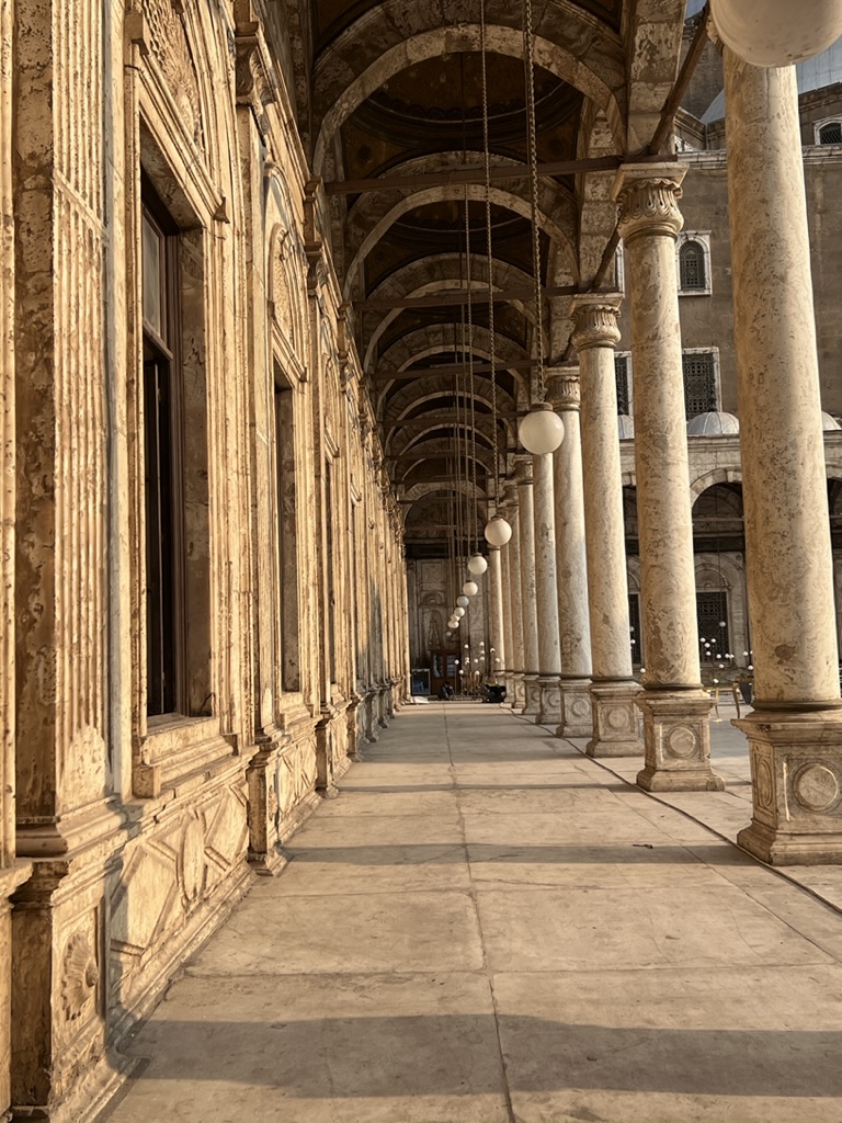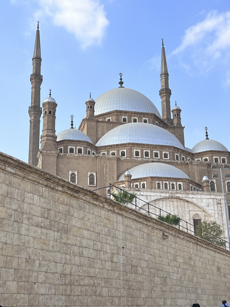 After having our fill, we found a taxi to take us to the Citadel, which was about a 15-minute drive from the Coptic area. As soon as we got out of the taxi, several other taxi drivers called to us to say they could drive us to the top of the hill where the entry to the mosque was. They kept saying it was a long walk and all uphill. But we persevered on our own and the walk was really not that long and not that difficult. The Citadel is a medieval, Islamic-era structure built as a fortification by Saladin and further developed by subsequent Egyptian rulers. It was home to rulers for about 700 years until the 13th Century. It was also the seat of government. Its location on a hill near the center of Cairo commands an incredibly impressive vantage point that overlooks the city and manages to dominate the Cairo skyline. Today it is a preserved site that includes mosques and museums. The largest of the mosques is the Mohammed Ali Mosque. The space is huge with one gigantic dome surrounded by others. There is a huge courtyard from which you can see the whole city for miles around. While we were there they were setting up for what is likely to be an amazing wedding (actually couldn’t believe they “rent” the place out for events!) We managed to get a peek at the bride.