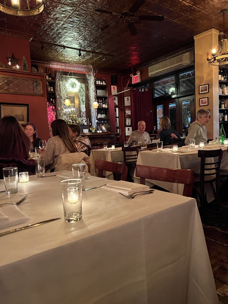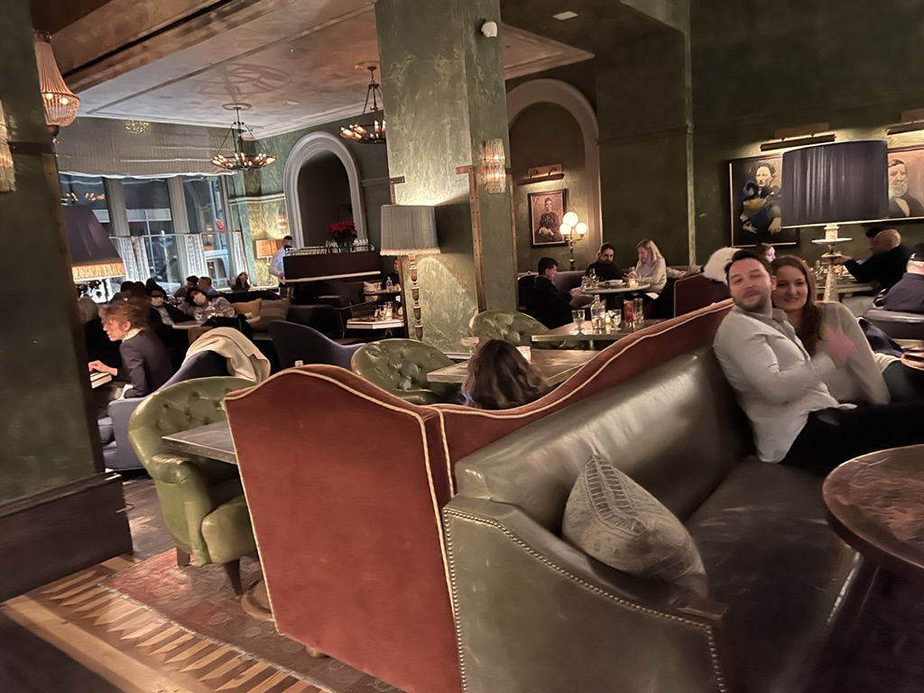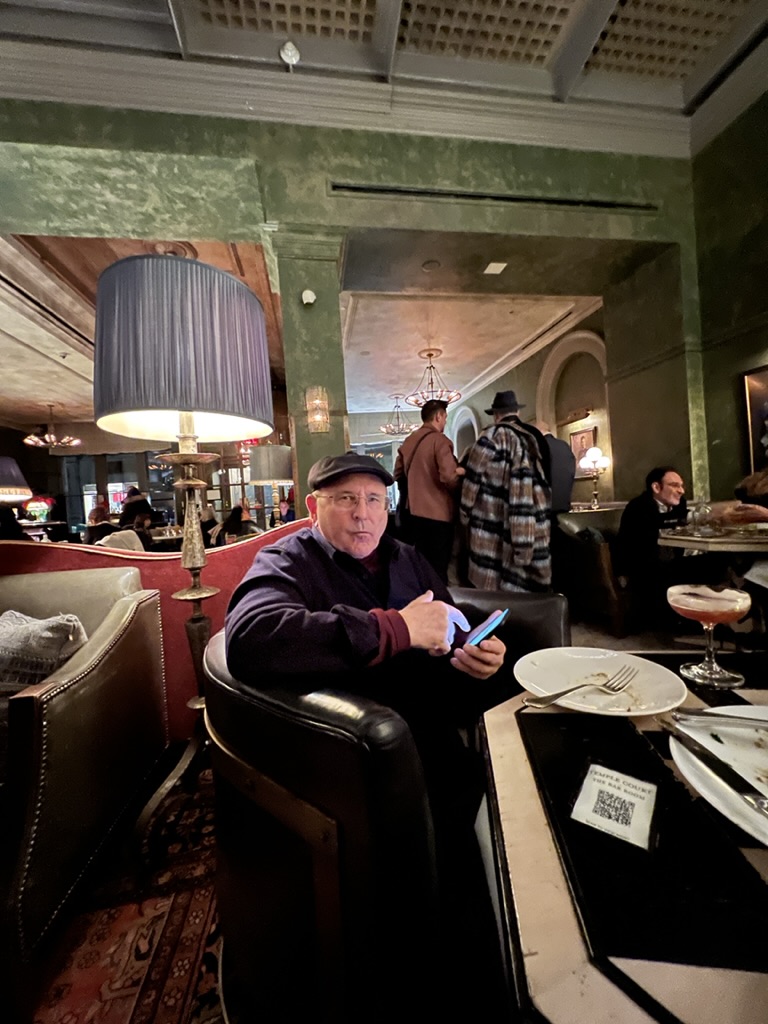 We had “welcome” cocktail in the Temple Bar on the ground floor and then headed to Lavagna in what I guess is considered wither the East Village or Alphabet City. It’s one of my favorite restaurants in NY – small (seats only about 40 people), great Italian food, and the owner knows and remembers everyone. Indeed Mike was quite impressed when he remembered that I was living in California and told me that just the other day someone sat at the same table we had and that person was from Santa Rosa! He’s a real kick – came from Greece and went to UCLA (and studied “everything” as he describes it—changing his major many many times, eventually graduating with a degree in European history. But he wound up in NY and 22 years ago he opened the restaurant. We discussed the impact of Covid on the restaurant and he said business had recovered but now is down 70%. But, he exclaimed that he is a survivor and the restaurant will be here when I’m next in NY! After a great meal including octopus carpaccio, fedelini pasta in a light spicy tomato sauce, pork with seared chard, and a panna cotta, we taxied back to the Beekman, our home for the next four or five days.