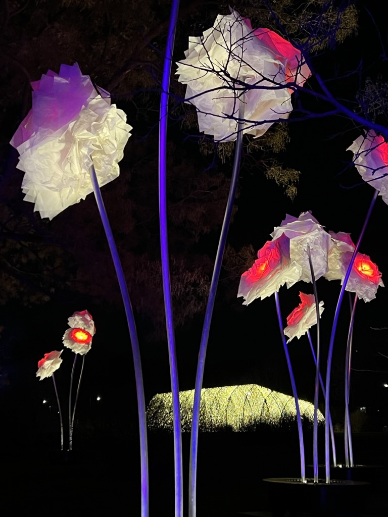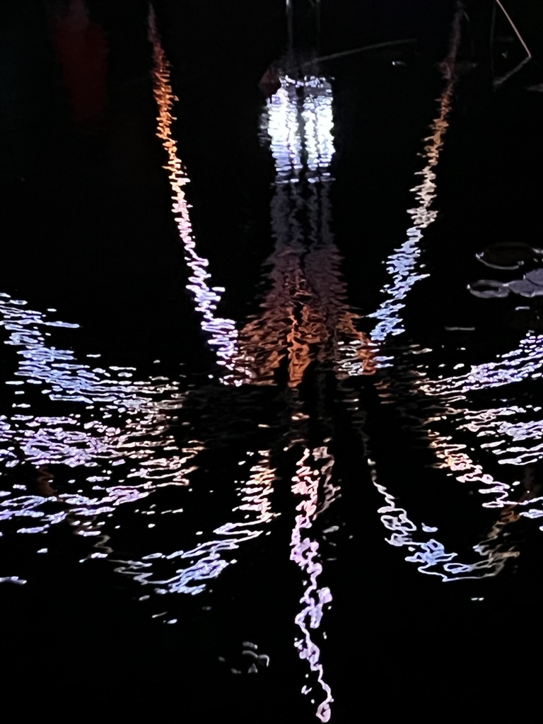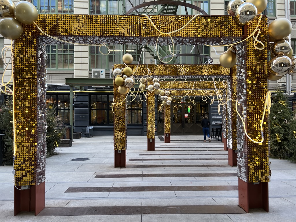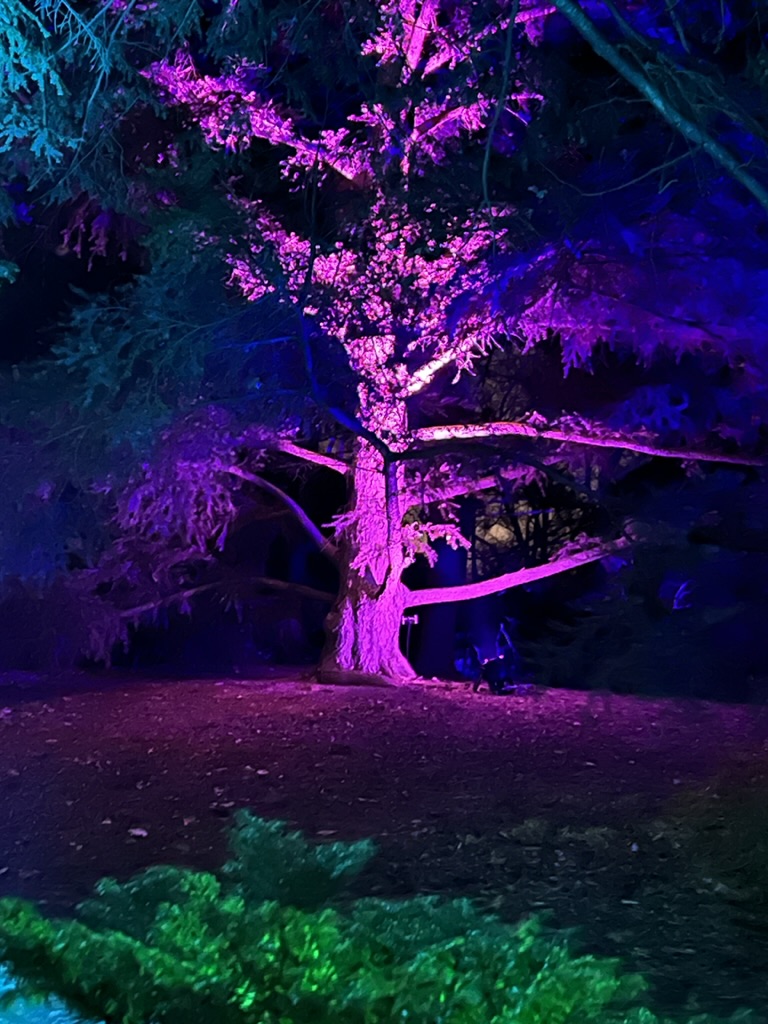 From there, we headed to the Botanical Gardens to see “Lightscape” – a winter nighttime transformation of the gardens through light and sound. They’ve set it up as a one-way, one mile walk so that you enter on Washington Street and exit on Eastern Parkway.. The installation meanders throughout the large area of the gardens with not just lights but symphonies of sound and illumination. In one field (probably the size of a football field) lights literally “move” and “float” and change colors as they cross the ground as if to emphasize the music playing in that area. Ever-changing, it was pretty mesmerizing.