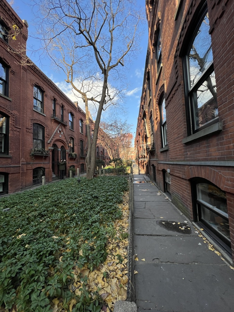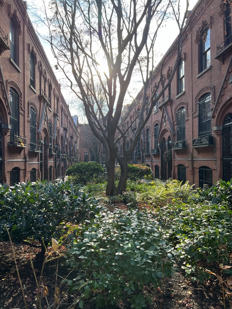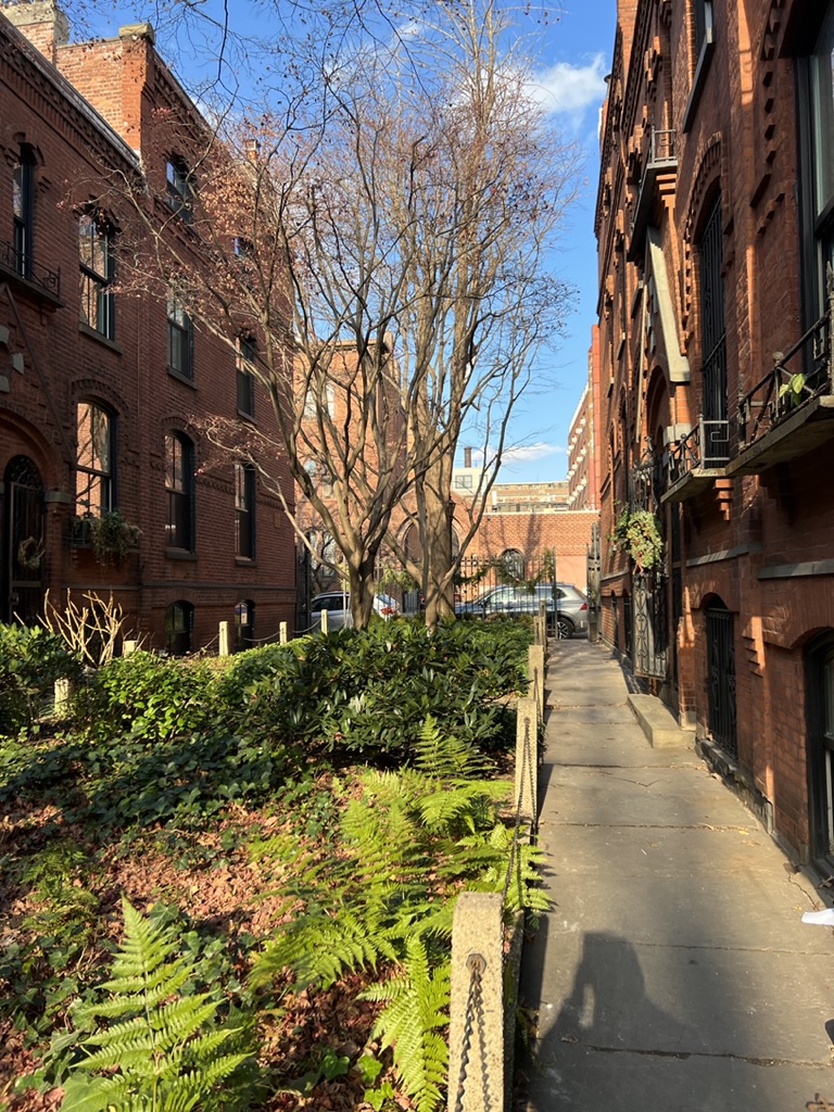 Today, we headed to Cobble Hill for breakfast on Smith Street and then walked the neighborhood to see some amazing narrow streets with fascinating housing developed in the late 1800s. One group of row houses were built as worker housing and is now selling for about 2 million dollars! We strolled Court Street and Smith, as well as Baltic and Warren streets and then headed to Industrial City located in an area that used to house real manufacturing and was adjacent to piers where ships would come to transport the goods; now it is a collection of offices, artist and craftsman boutiques, and outlet stores for well-known design furniture and other goods.