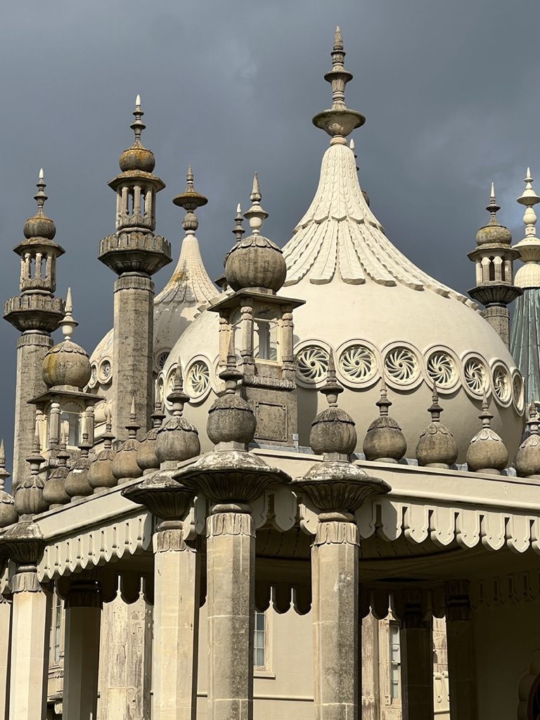 They encouraged us to visit the Pavilion and we did. The Pavilion—built in Indo-Saracenic style has an interesting 200-year history. It was built to be the seaside pleasure house for King George IV. Its dozens of rooms are furnished both elaborately and eclectically with a good deal of Chinese artifacts. The current look of the Pavilion, with domes and minarets, came from the extension of the building in 1815. When George’s successor, Victoria, visited for the first time, she supposedly stated that she didn’t like the ostentation and also didn’t understand why a palace would be built at the sea and not have views of the sea. Apparently George’s interests in being at the sea had little to do with the waterfront and more to do with his own activities inside the palace with his women friends. Bottom line… amazing craftsmanship and upkeep—definitely not my style!