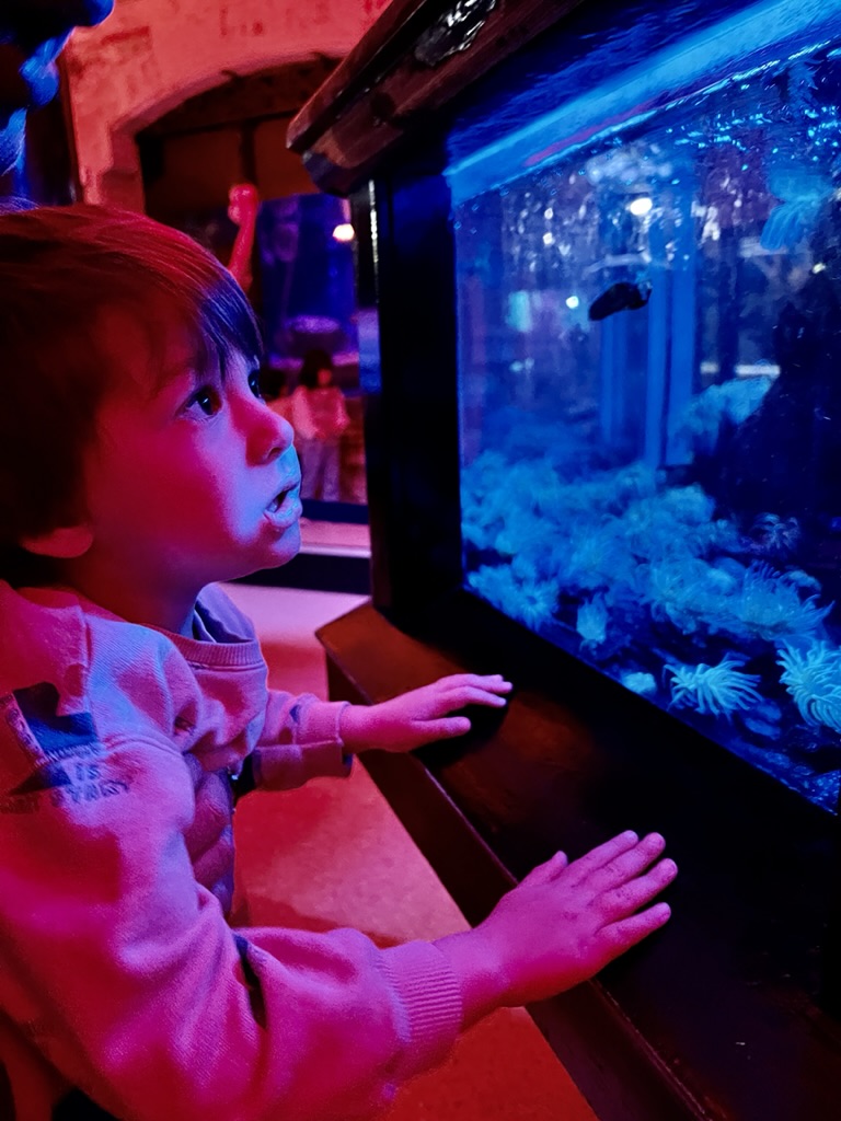 The train was efficient and we watched Finn play numerous games, put dinosaur stickers into scenes, and eat about every ten minutes. Mostly he was looking forward to seeing sharks at the aquarium. We arrived in Brighton and walked the ¾ mile to the aquarium—the oldest aquarium in the world, built in the 18th Century.