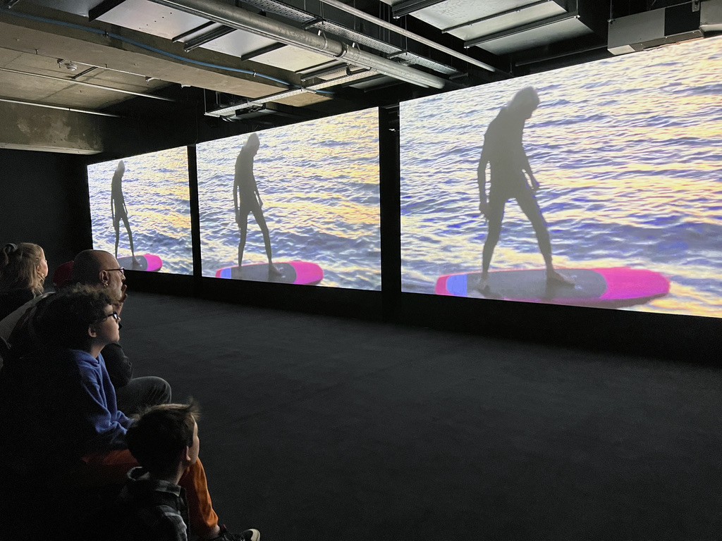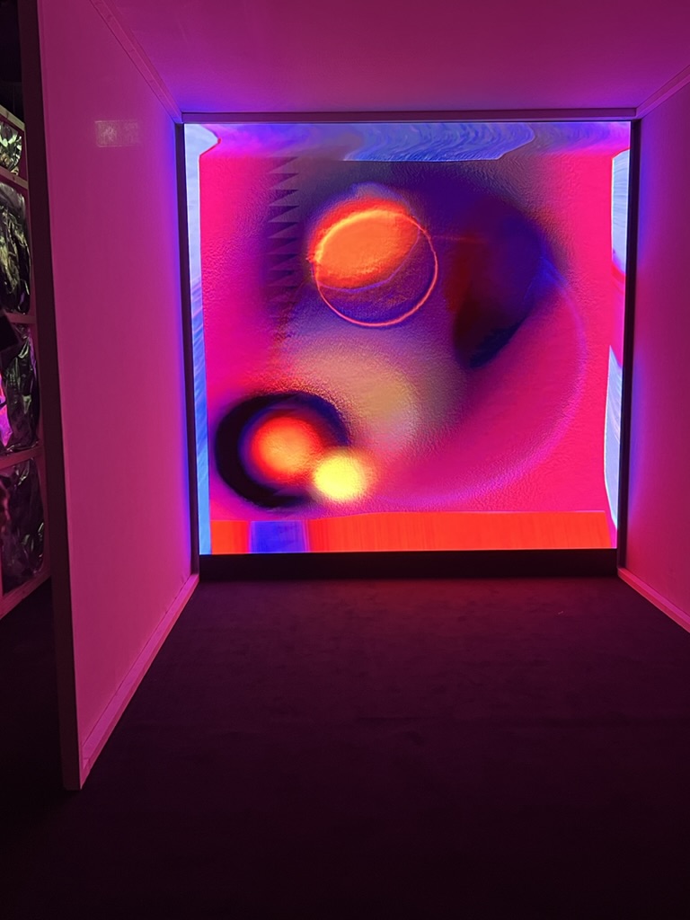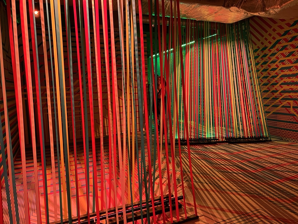 Began today walking and taking tube to the 180 Strand Gallery to see the Future Shock exhibit: a series of subterranean spaces transformed through various forms of immersive digital technology, artificial intelligence, and some kind of 3D mapping—all with electronic music and lasers. Each space was handled differently and they represented the work of many different artists from across the globe. It was mesmerizing, as well as disorienting… and the content was definitely unclear. Frankly it was like a light show rather than art making a statement about the future which is what it purported to be. Seemed like a lot of escapism and contemplating one’s navel rather than being at the forefront of real ideas. But that’s just my humble opinion. On the other hand Finn seemed to like it—the bright colors and the motion, I suppose. We bid farewell to Hem and Finn who went off to a birthday party; Mike went back to the hotel and Emma and I hopped on the tube and headed to Broadway Market to get some lunch.