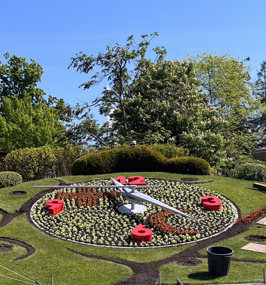 After dinner, we strolled back across the bridge to the hotel—with the Jet d’Eau (the fountain or the Water-Jet) in full view. The fountain , which you see in all pictures of Geneva is probably the city’s most famous landmark. It’s situated where Lake Geneva exits as the Rhone. When you fly into Geneva the Lake is very visible. I think it is the largest lake in Europe and part is in France. The water jet spouts to about 450 ft. It’s been interesting to stay in this part of the city and to see the lake every time we enter or leave the hotel. For all previous visits to Geneva (and there have been many) we stayed in other parts of the city where we had to walk to the lake. But nothing is very far given the size of the city.