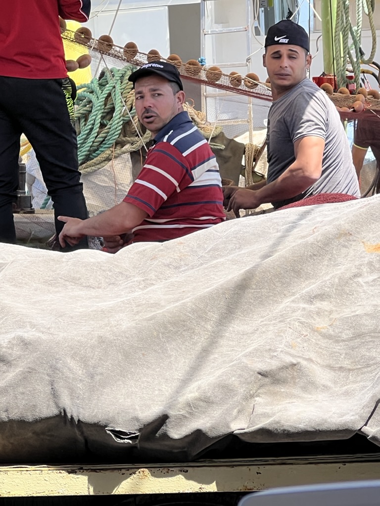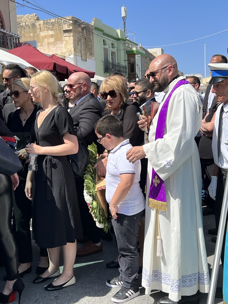 Finally, we were on our way to Marsaxlokk (pronounced Marsa-schlock, I think)—a little fishing village with about 3,500 inhabitants. The fishing boats are all painted bright red, yellow, blue, green, and white. There are many restaurants lining the edge at the water and naturally the fish dishes are very fresh and literally “just caught.” We ate at one of those little restaurants at a table where we could watch the boats and the fishermen (yup, all men), and then we strolled the town. In the middle of our rather late lunch there were canon-like sounds, followed by what seemed like traditional music from a live band, so I jumped up to see what was happening and was in the middle of a funeral procession coming down the harbor street.