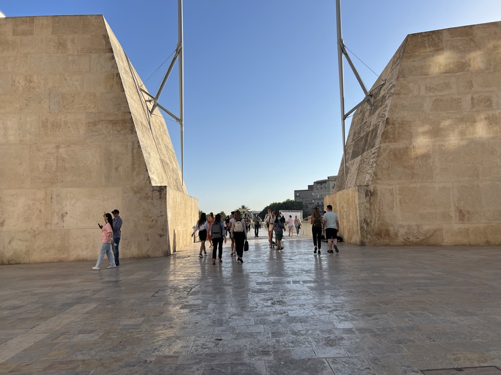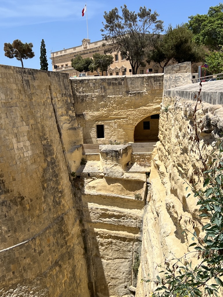 From the Blue Grotto, we headed back to Valleta and to our favorite garage (which we now know very very well) and parked in our same spot on the second level. Hopefully, we will find it easily tomorrow. We strolled along Republic Street past the new Parliament Building and new city gates (both designed by Renzo Piano), which are strikingly effective and blend in to the city well (without much of the fanfare and “look at me” style of many new buildings set into historic settings). The buildings use the traditional materials and echo a lot of the scale of the older buildings.