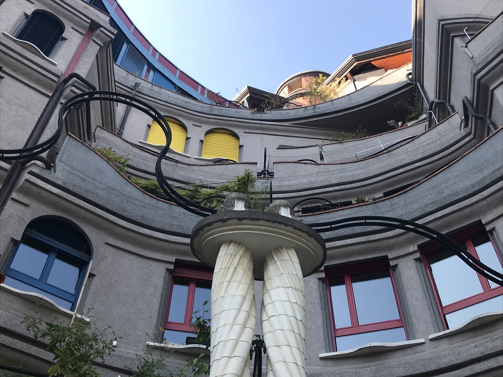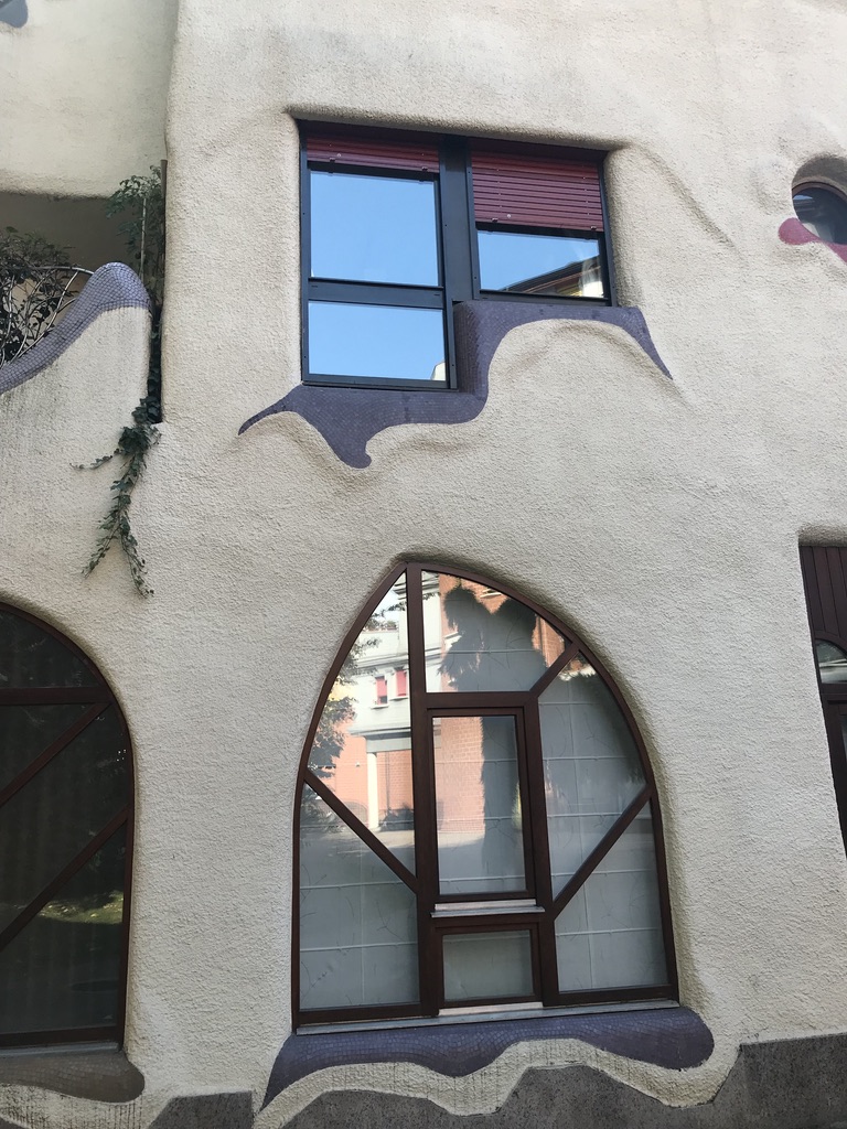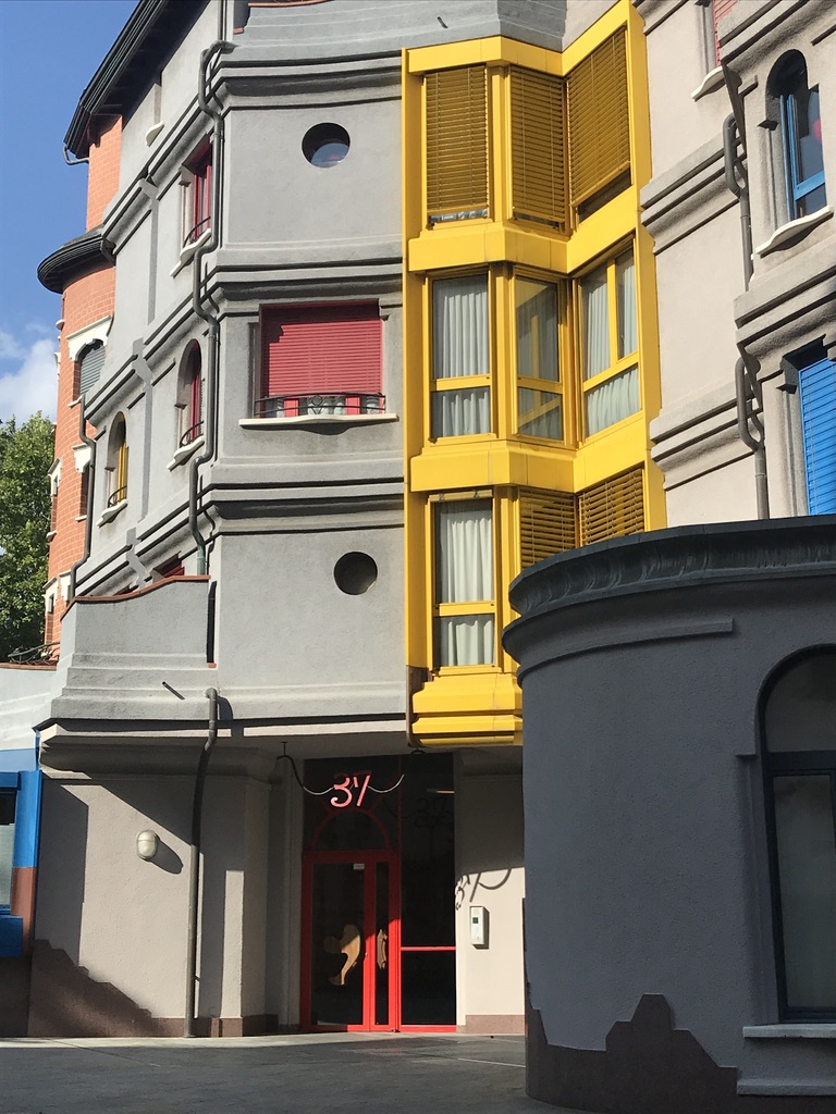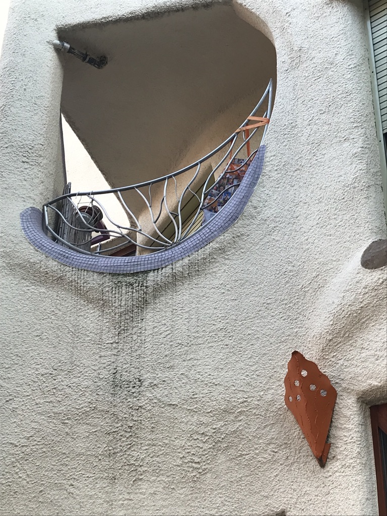 At about 4:00, Mike and I headed out and walked (about a mile in each direction) to see the Smurf Houses (?) – a complex of affordable, subsidized housing located a few blocks from the train station. I had read a little about it and we had never seen it. What a charming surprise! The photos do not convey enough of the fun, the uniqueness, or the fascinating (somewhat Gaudi-esque) structures. Nor do they explain everything going on at this site which includes at least 500 units, with about 200 being subsidized, I think.. The project was designed by Swiss architects Christian Hunziger, Robert Frei, and Georges Berthoud, and it was built between 1982 and 1984.