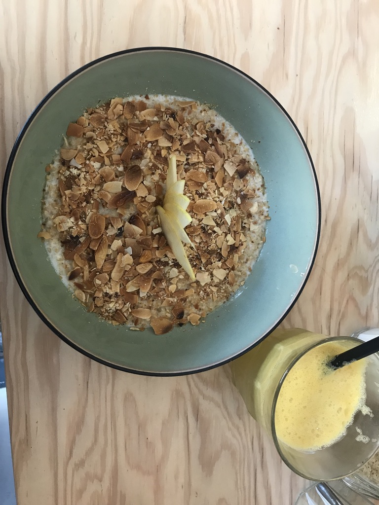 Headed out for breakfast this morning to our favorite little café called Birdie. We ate breakfast here every morning on one trip.. so we headed back. Great hot porridge with milk and apples and honey and almonds and many other things.
