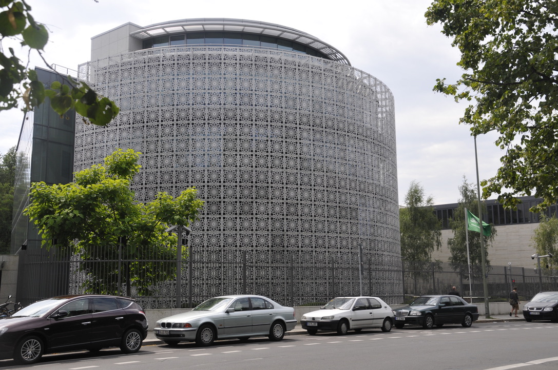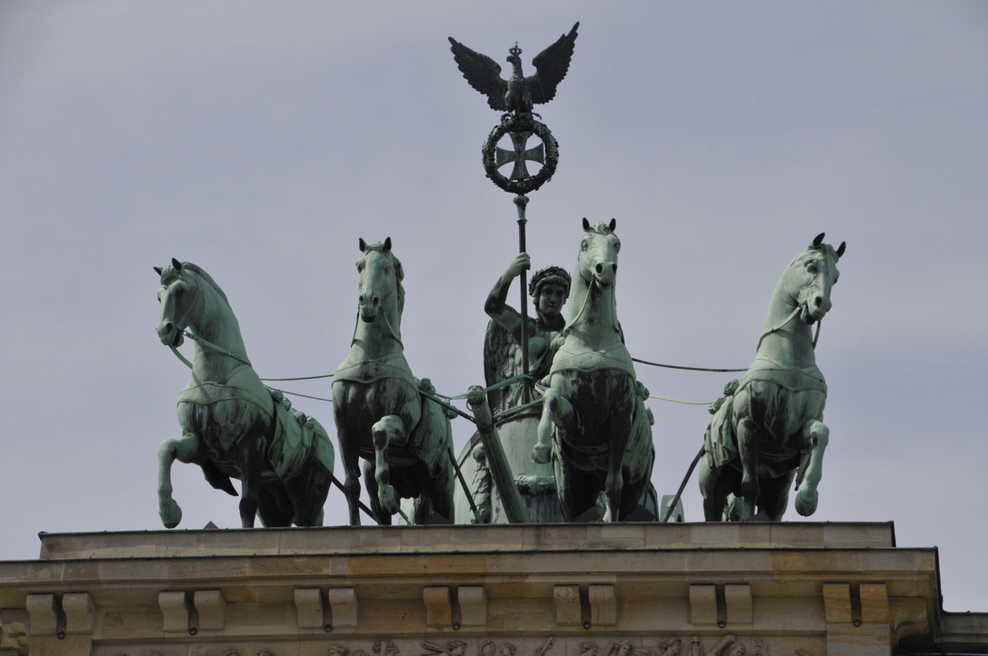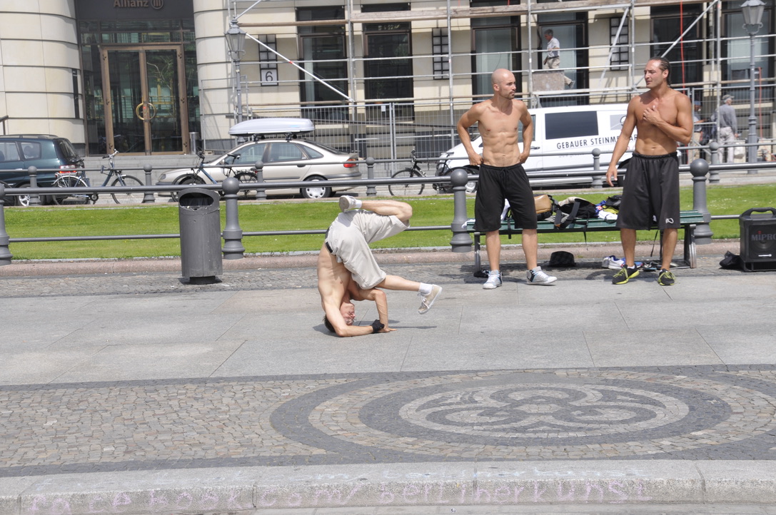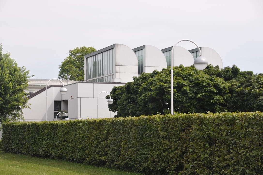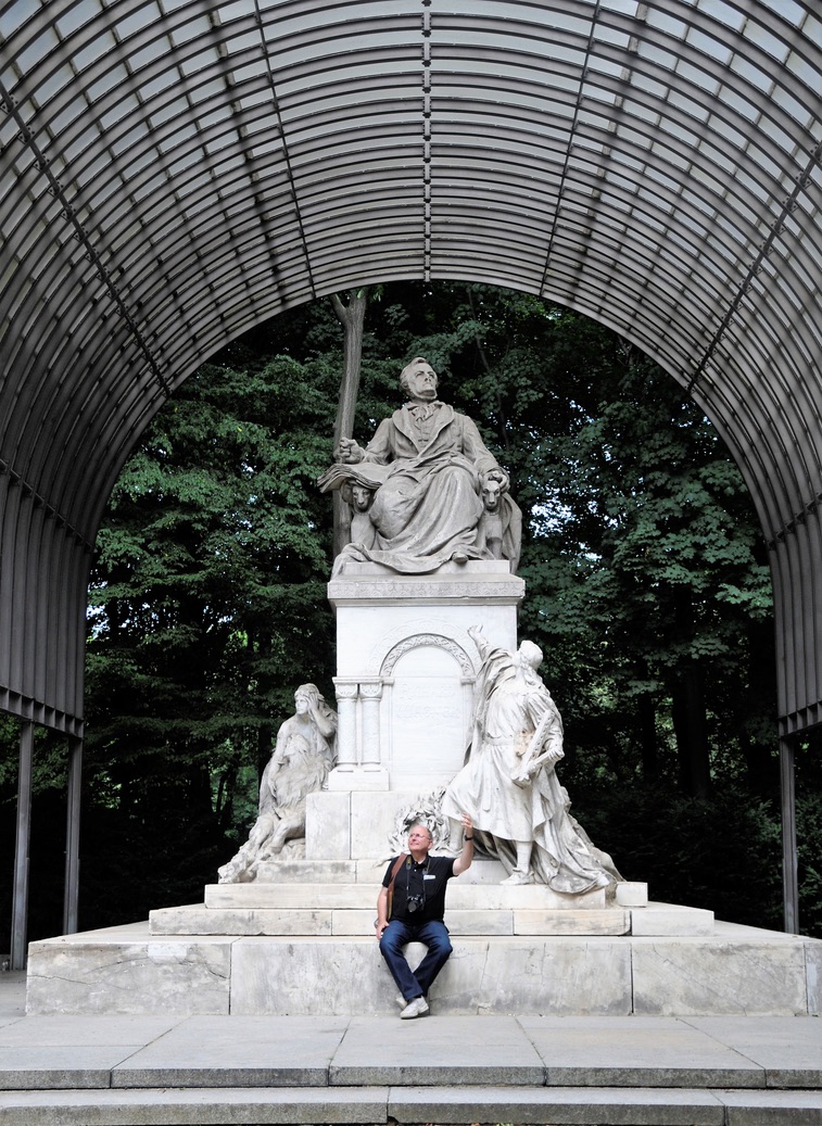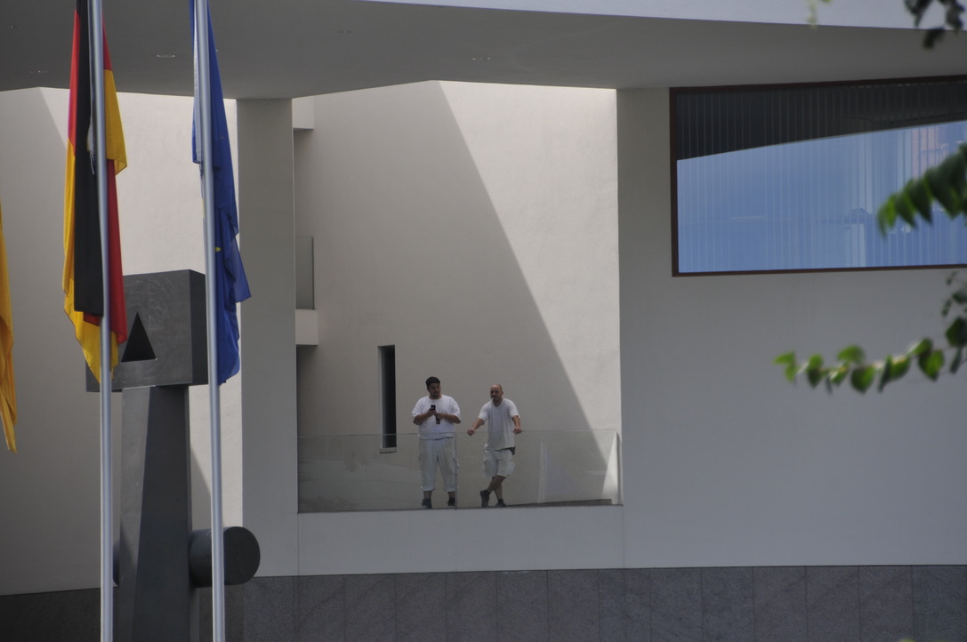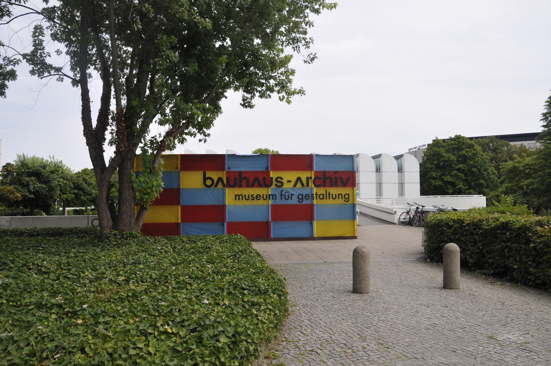 Got off to a not-so-good start as when we sat at an outside table at the café… literally at that moment.. a bird decided to do its thing on Mike’s shirt.. kerplop! If you weren’t Mike, it was pretty funny. And we were totally attacked by a single bee, who just couldn’t find anyone else to bother. Anyway, after this breakfast, we walked to the Reichstag with the intention of climbing to the top of the dome for what we assumed would be a spectacular view. It was really really hot today as we walked along Unter den Linden to reach the Reichstag… only to find out that you need a reservation to get to the dome and they were totally booked. So we then walked through the park to our next stop which would be the Bauhaus Museum (a building designed by Walter Gropius in 1964 and built soon after his death in 1976. .. The walk took us all along Embassy Row.. which includes dozens of new buildings developed I suppose when the capitol was moved from Bonn to Berlin.