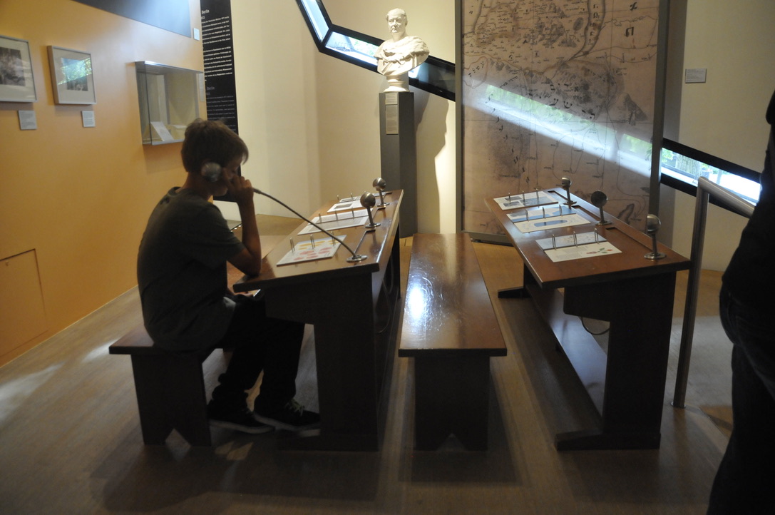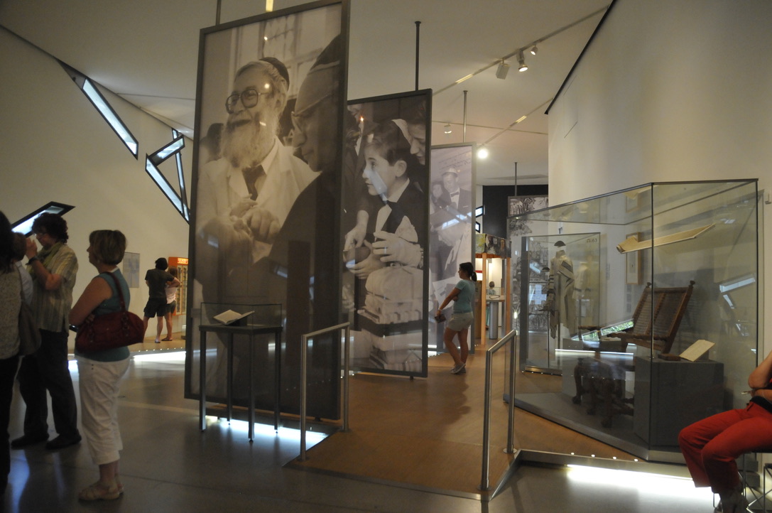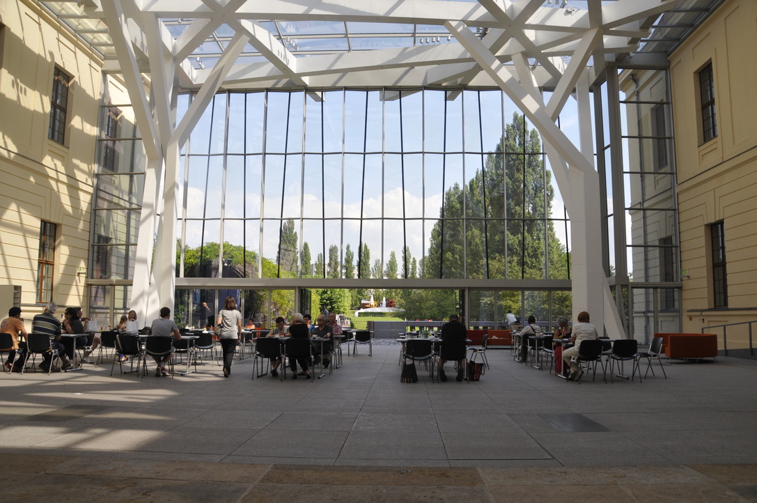 From there we had planned to trek about 5 kilometers more (we had already gone about 5 km) to the Jewish Museum, but opted for a taxi instead (a very good decision!). The Jewish Museum opened about 11 years ago and was designed by Daniel Libeskind and includes an old baroque building.. and a new glass courtyard installed in 2007. While the building itself can easily be distracting as its own “sculpture” and is not always totally conducive to exhibits — calling too much attention to itself — I actually didn’t mind it (except in a few cases.. but am sure that the curators and exhibit designers were really challenged by some of the shapes of the spaces), the permanent exhibit (except in a few hokey places) is really phenomenal, with tons of interactive, hands on portions and an extremely graphic and visual approach to such a complex subject as tracing the history of Jews over 3700 years… It was also truly a challenge to create a logical exhibition that could be understood by people of so many language, ages (children through seniors), cultures, etc. and wanting everyone to stay through the entire process of being informed. Overall — a great job. The temporary exhibit was a documentary photo exhibit of the 270,000 Russian Jews who immigrated to German (Berlin specifically) after they could leave the Soviet Union… their travails as they attempted to assimilate, learn German, understand what it means to be Jewish — and to make choices about their future.