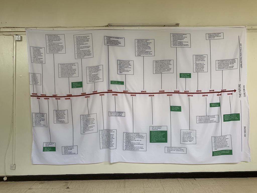 - Radio stations seem to have a large number of public service “stories” that are sandwiched between every two songs. Some are like little telenovelas but with only sound. One was a new mom talking with her husband while the baby cried. The dad says that the mom should do something about the crying baby and the mom says she is washing her hands because she just changed the diaper. The dad says “But the baby is crying” and the mom says “Better for the baby and the rest of the family not to get sick because she was starting to cook and without washing her hands would be worse than letting the baby cry for a while. The mom says something about .. the baby won’t die from crying but could die if the mom didn’t wash her hands before touching food. Obviously, they didn’t get into the fact that the dad could deal with the crying baby…. Step by step.. And there are posters and campaigns everywhere regarding AIDS. Uganda has the highest infection rate in the world, I believe.