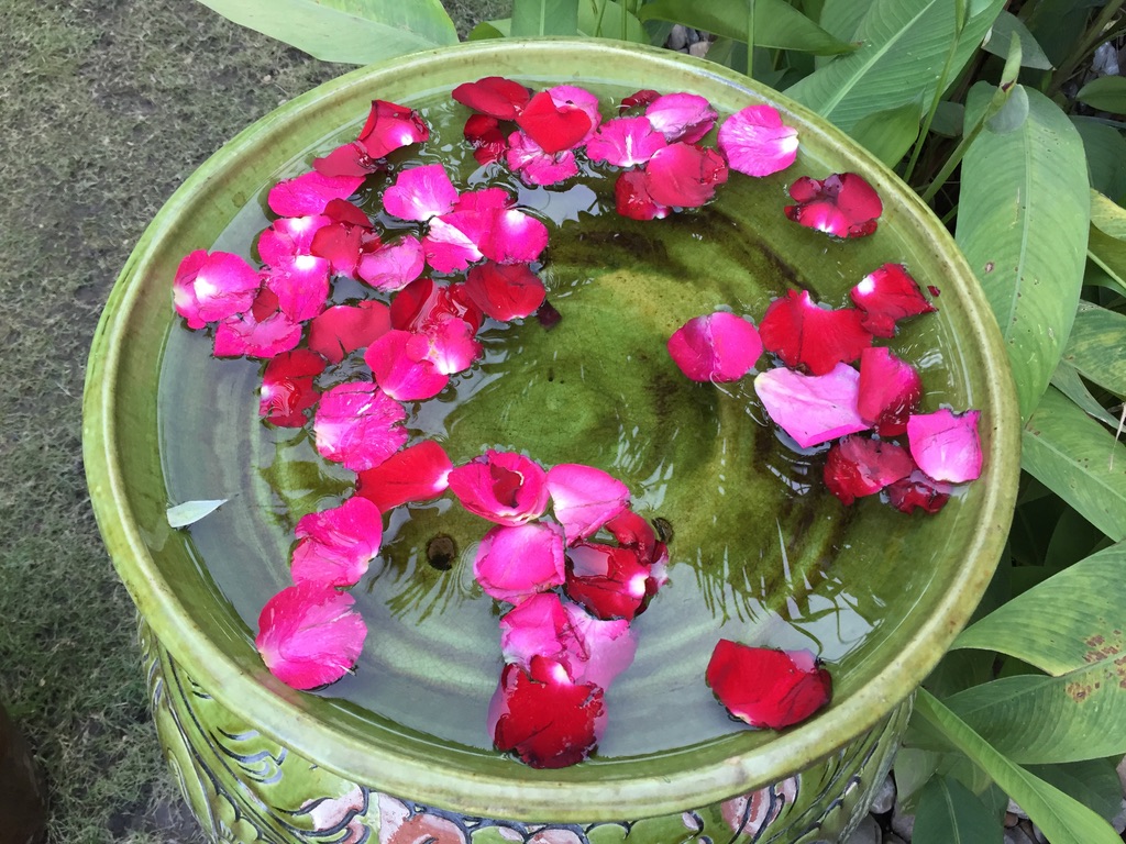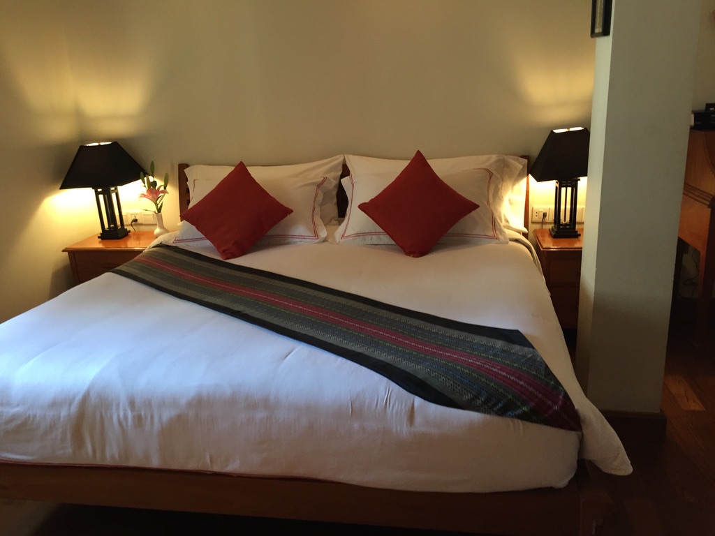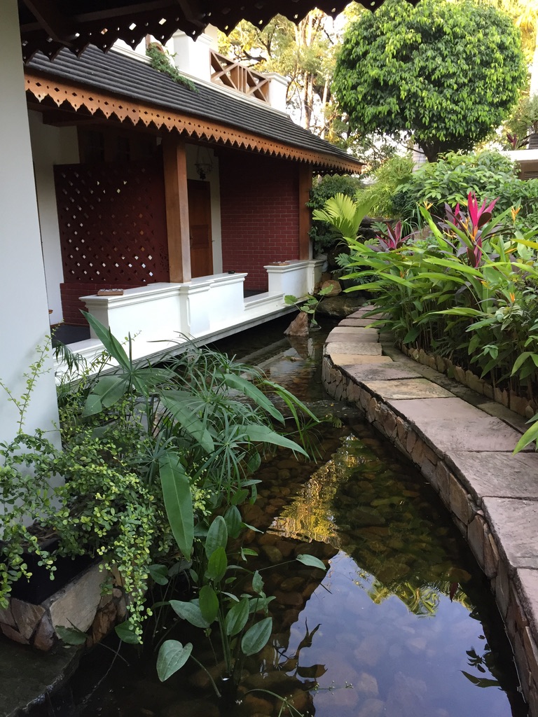 By then it was about 4 pm and we were pretty hungry, so we stopped at the hotel restaurant and had a pretty nice late Indian lunch. Settled in to HRC and will soon take a stroll and get dinner (I think eating is all we did today). The hotel is quite charming. Another small, boutique style hotel – with nice gardens and lots of teak… They go a little overboard so when we got to the room, the bathtub was filled with hot water and hundreds of rose petals. We found a letter in the room indicating that our room rate (we’re probably overpaying because we were so desperate) includes two massages. Given our ride yesterday for about a total of two hours in the tuk tuk where we were pretty much airborne 50% of the time, I think the idea of a massage sounds great. Maybe tomorrow.